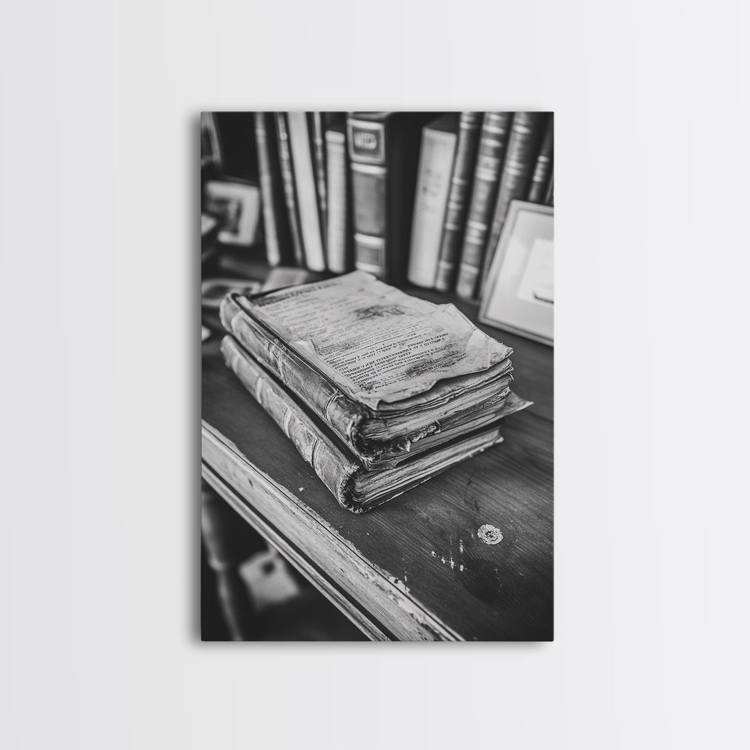 Antique Books, Literary Decor, Vintage Library, Framed Canvas Print, Study Wall Art, Rustic Book Lover Gift, Office Aesthetic