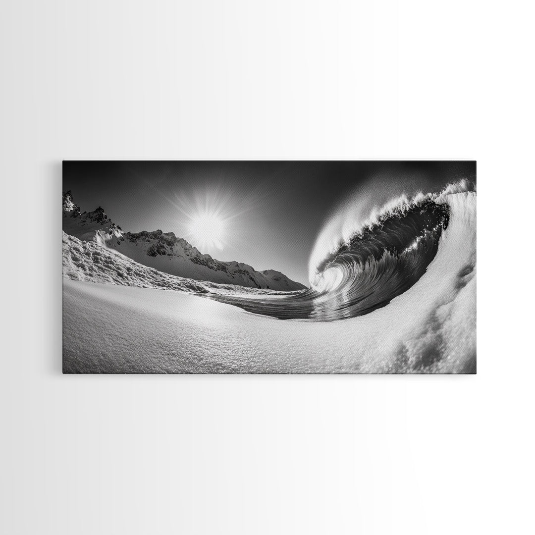 Arctic Wave Motion, Snowy Surf Curl, Mountain Sun Scene, Nature Energy Art, Canvas Print, Living Room Wall Art, Winter Adventure Decor