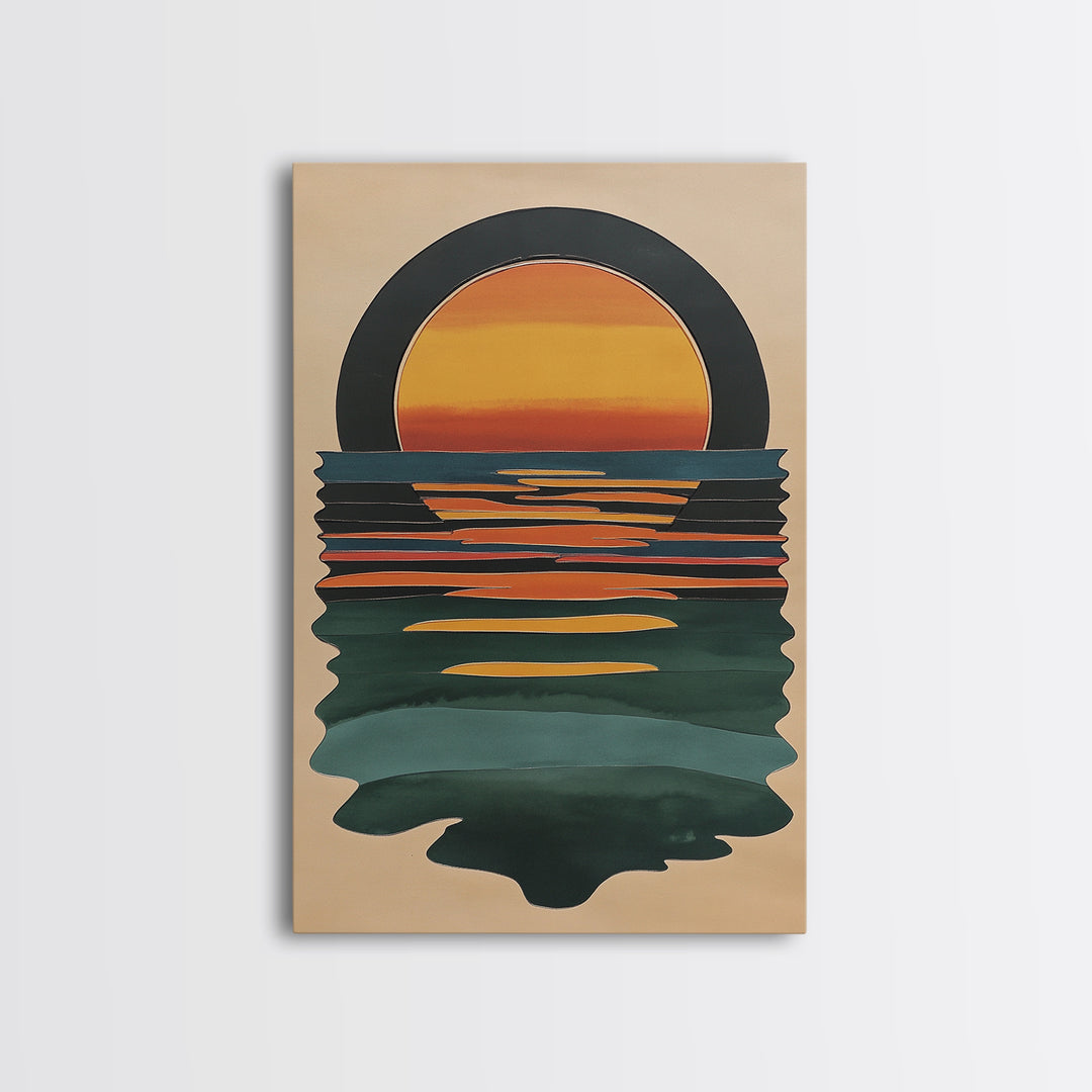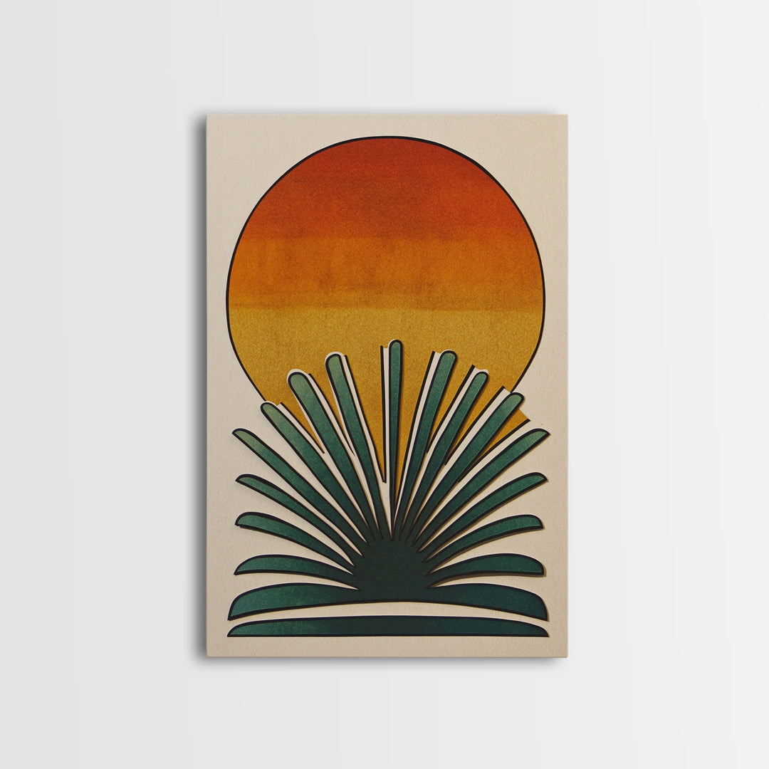 Art Deco Sunset Boho Style, Canvas Print, Sunset Framed Wall Hanging, Mid-century Modern Home Decor, Vintage Inspired Art