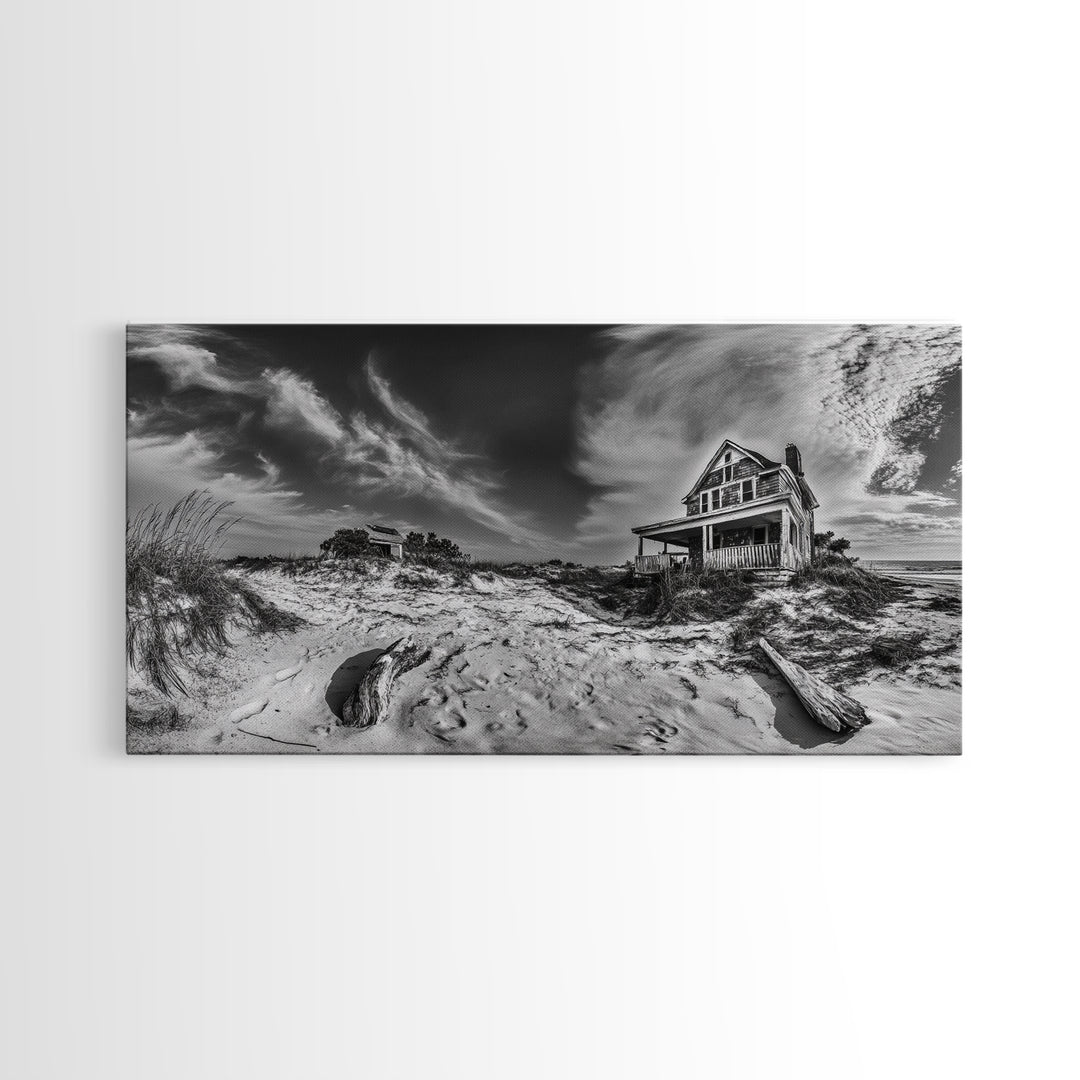 Abandoned House, Beach Shack, Coastal Ruins, Windy Sky, Canvas Print, Rustic Wall Art, Fall Home Decor, Dramatic Seaside Scene