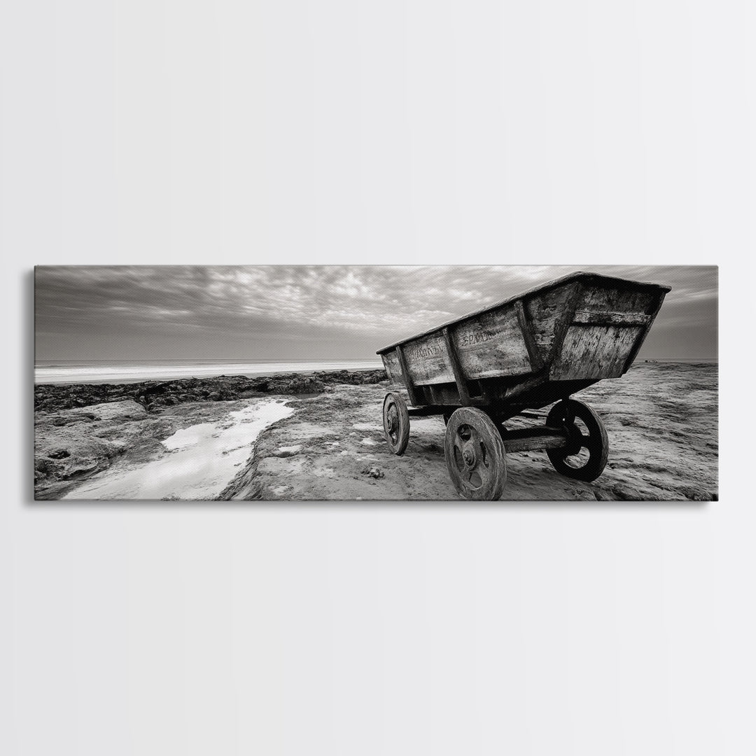 Abandoned Cart, Coastal Relic, Moody Beach Scene, Vintage Charm, Framed Canvas Print, Industrial Decor, Farmhouse Wall Art, Entryway Accent