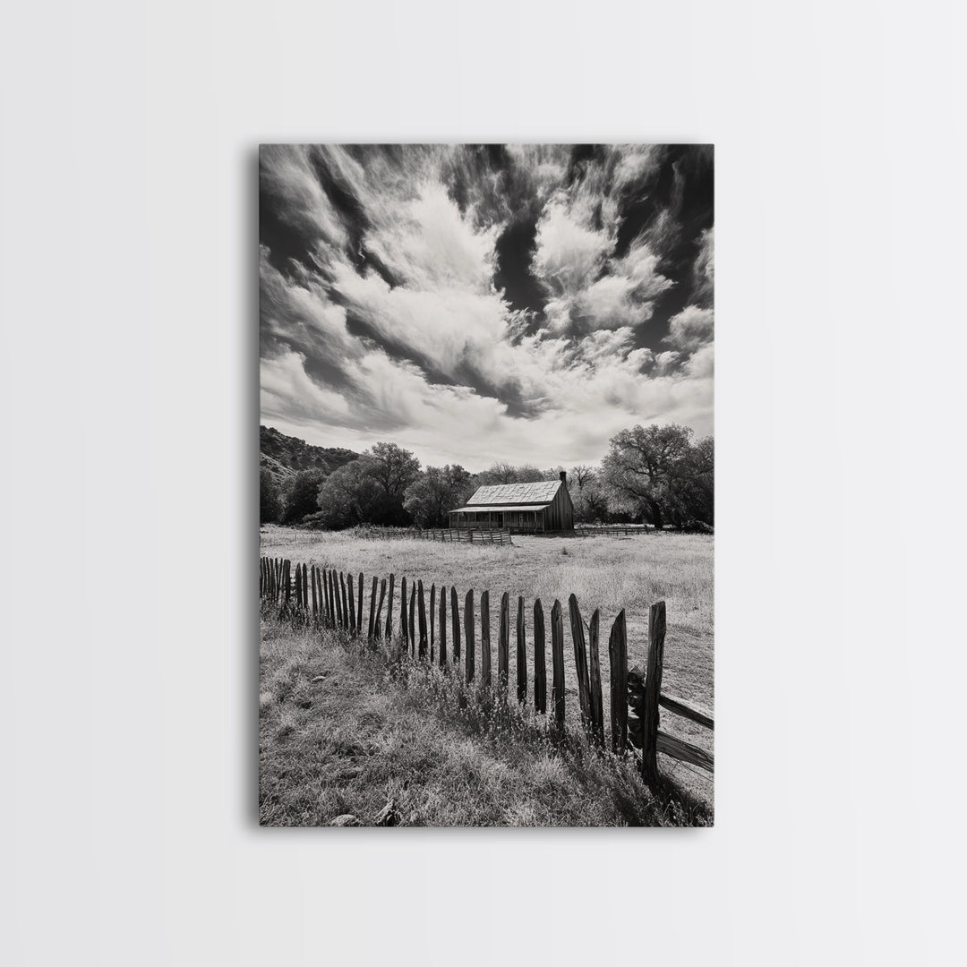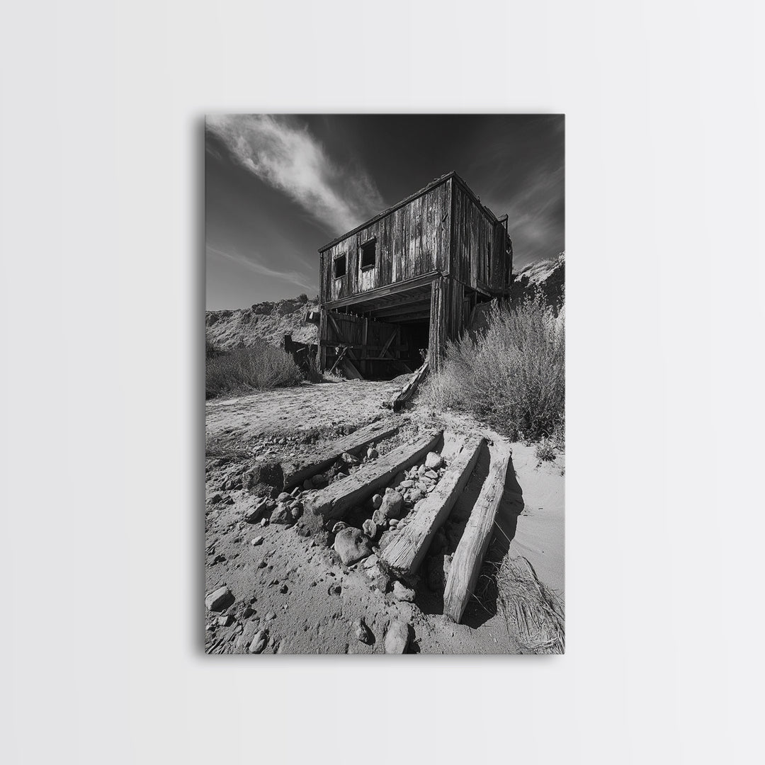Abandoned Cabin in the Wild Black and White Photography - Framed Canvas Print, Rustic Home Decor, Vintage Landscape Wall Art