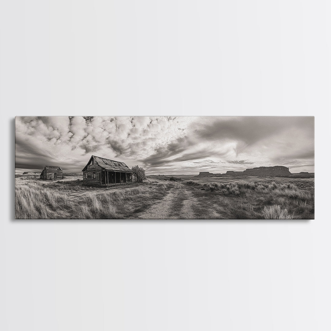 Abandoned cabin, western landscape, rustic wall art, panoramic art, extra wide art, southwest wall art, framed canvas print, farmhouse decor