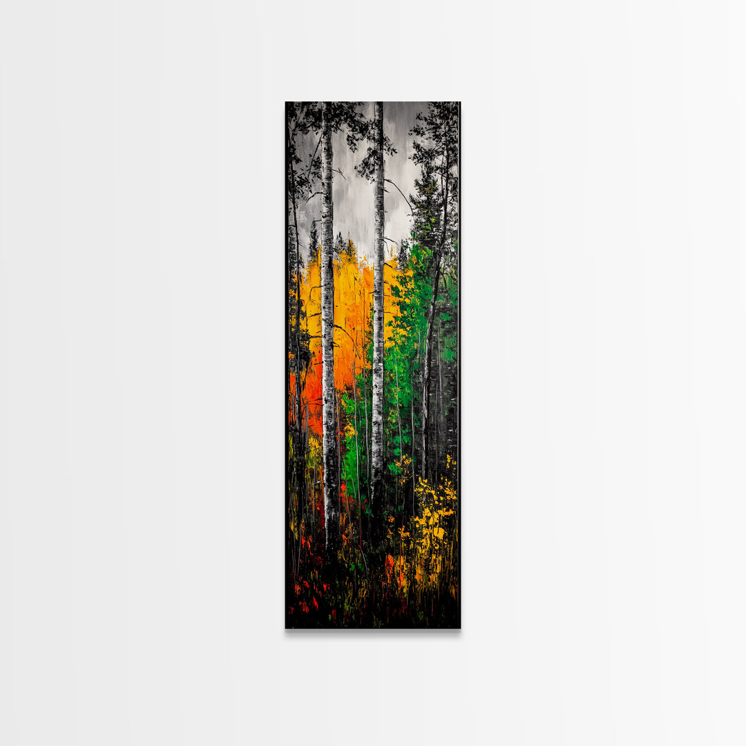 Autumn Birch Trees Framed Canvas Print – Rustic Decor, Tall Narrow Art, Cozy Fall Vibes, Birch Tree Art, Living Room Art, Above Bed Wall Art