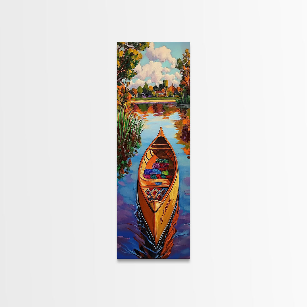 Autumn Canoe, Rustic Lake Art, Nature Wall Decor, Canvas Print, Fall Landscape Painting, Outdoor Adventure Art, Cabin Wall Art, Canoe Artwork