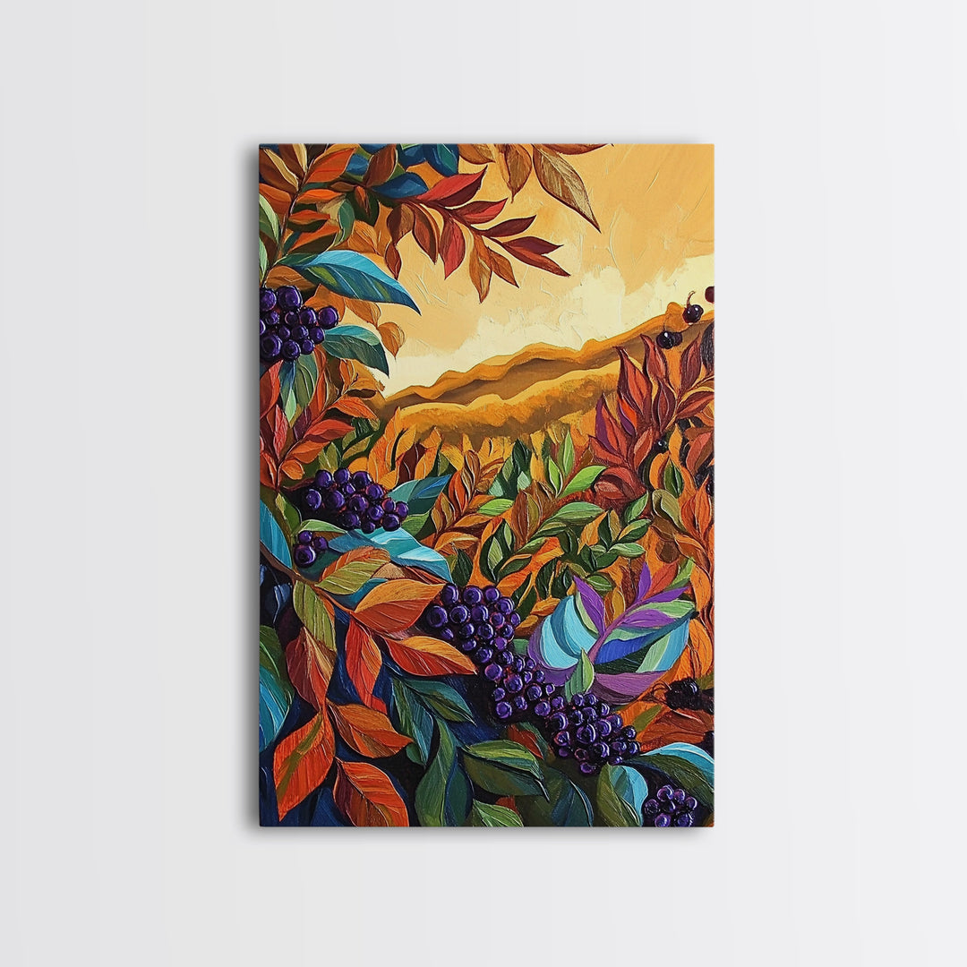 Autumn Berries, Fall Leaves, Colorful Harvest, Nature Art, Framed Canvas Print kitchen wall decor, cottagecore style, autumnal vibes