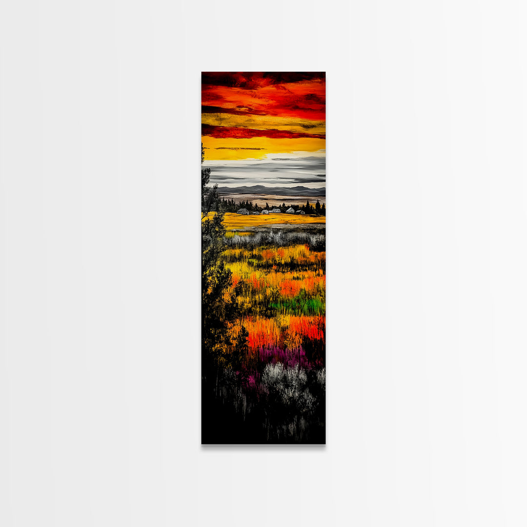 Autumn Fields, Sunset Painting, Warm Colors, Rustic Decor, Framed Canvas Print, Farmhouse Wall Art, Nature Inspired, Cozy Home Art