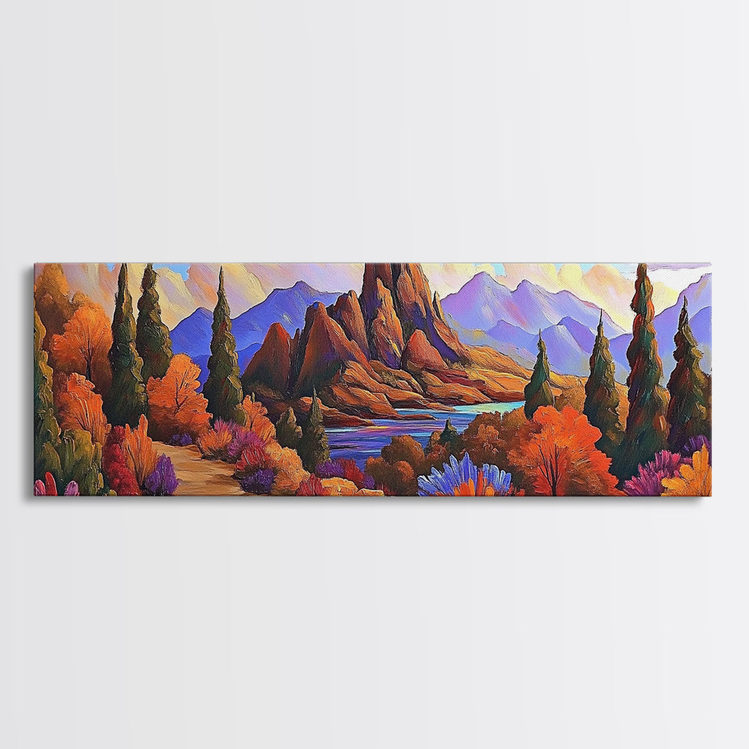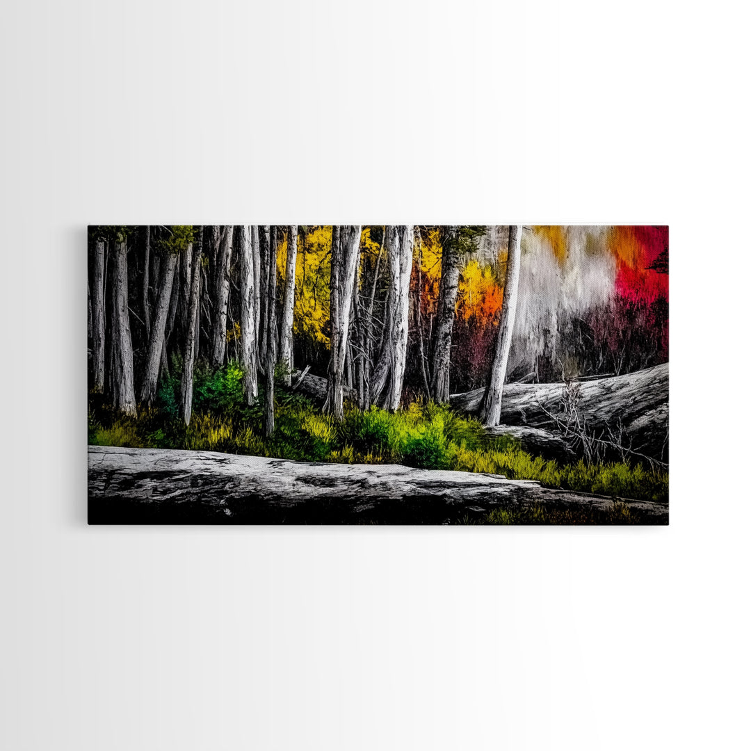 Autumn Forest, Colorful Trees, Vibrant Fall Art, Rustic Cabin Decor, Nature Wall Art, Boho Painting, Canvas Print, Woodland Landscape