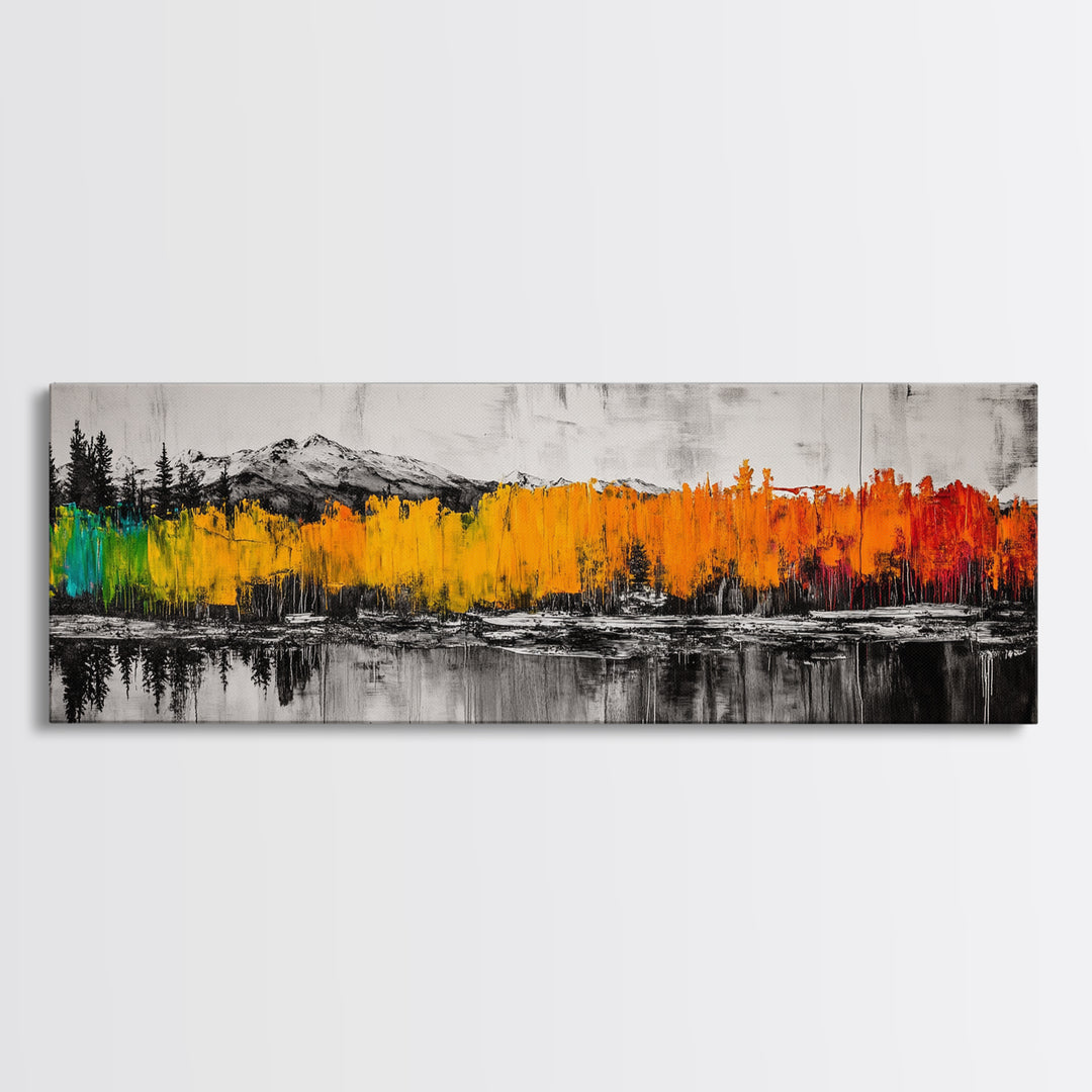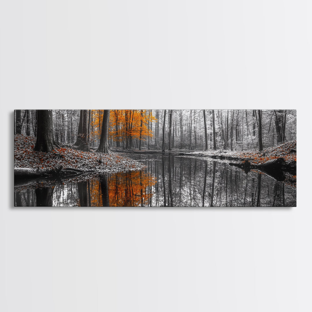 Autumn Forest Reflection, Serene Lake Trees, Color Splash Nature, Framed Canvas Print, Rustic Fall Decor, Living Room Wall Art