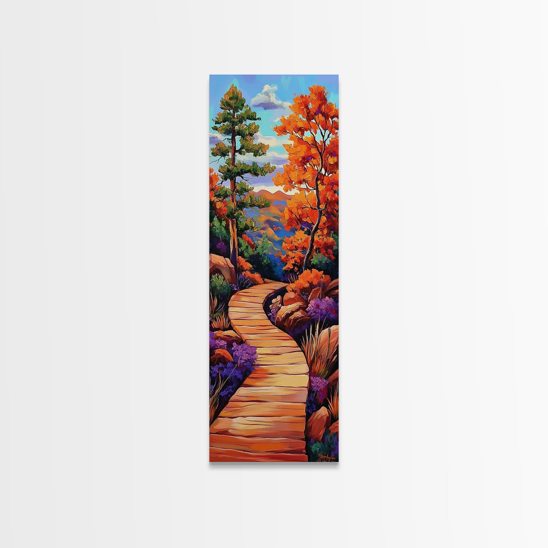 Autumn Forest Path, Colorful Fall Foliage Trail, Vibrant Nature Design, Framed Canvas Print, Cozy Hallway Art, Fall Living Room
