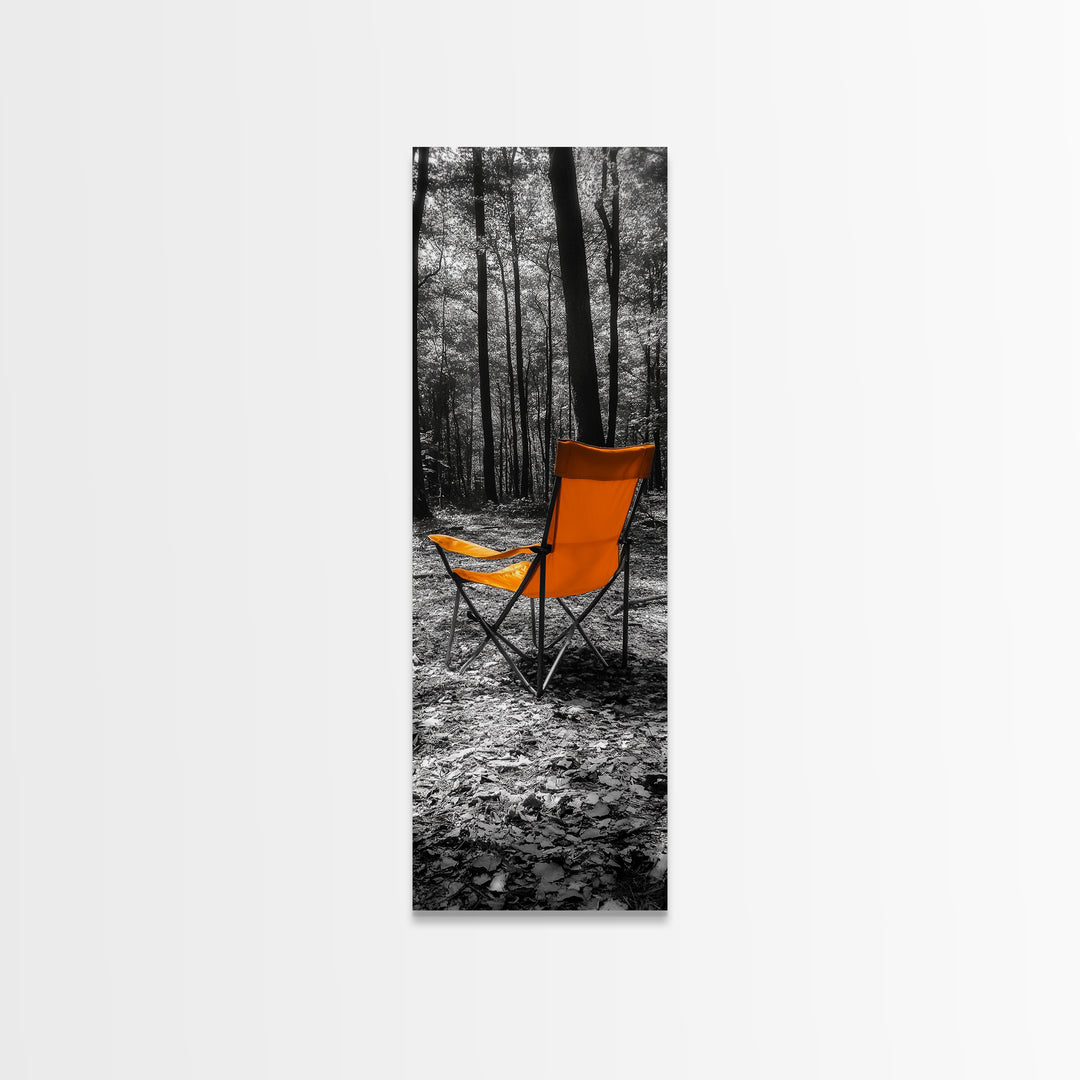 Autumn Forest Chair, Solitude in Nature, Outdoor Retreat, Framed Canvas Print, Fall Wall Art, Minimalist Cabin Decor, Nature Lover Gift