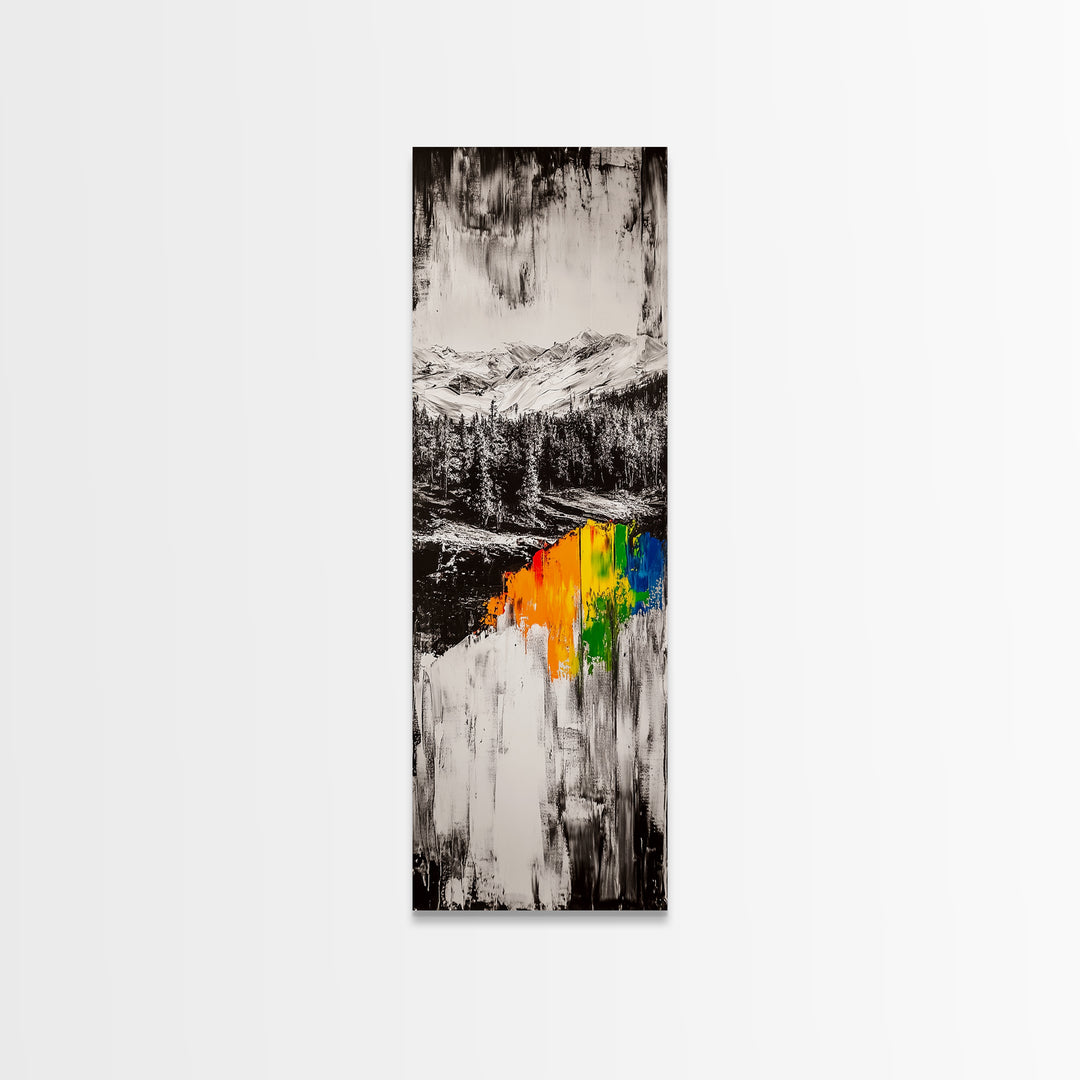 Autumn Forest, Snow, Trail, Canvas Print, Fall landscape painting, cabin wall decor, cozy mountain art, vibrant rustic hallway print