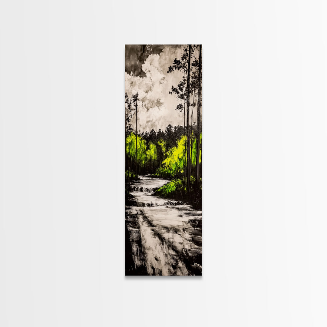 Autumn Forest, Stream, Escape, Framed Canvas Print, Fall landscape wall art, rustic cottagecore décor, hallway or cabin nature artwork