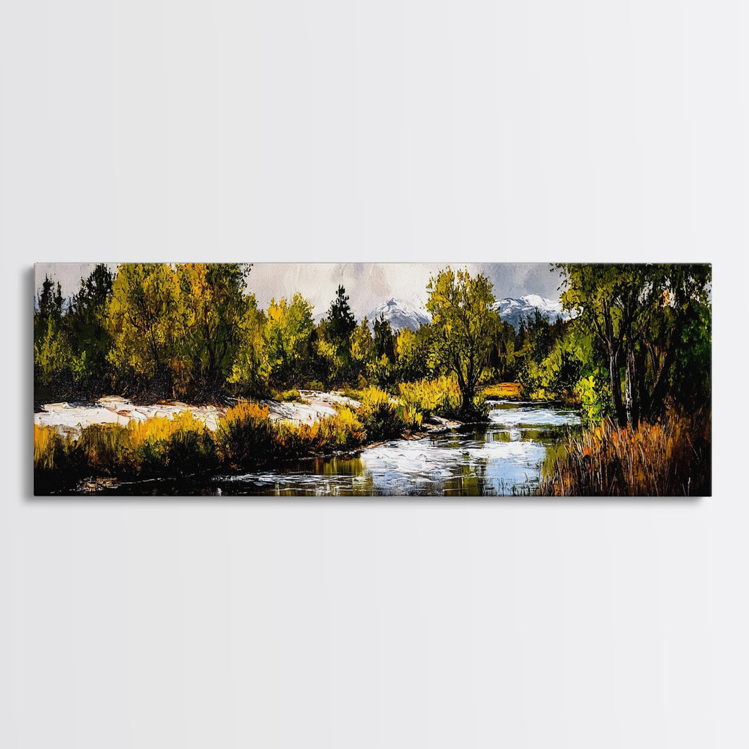 Autumn Forest, Mountain River Art, Vibrant Landscape, Fall Colors, Rustic Home Decor, Cabin Wall Art, Canvas Print