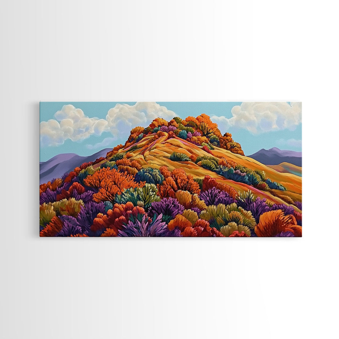 Autumn Hill, Landscape, Framed Canvas Print, Colorful Fall Mountain Scene, Cozy Autumn Wall Decor, Rustic Living Room Art