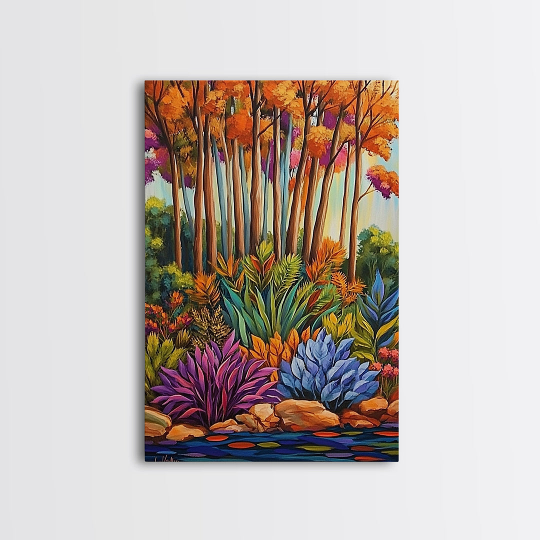 Autumn Forest, Vibrant Foliage, Fall Landscape, Nature Inspired Art, Framed Canvas Print, Cozy Home Decor, Rustic Cabin Wall Art, Boho Aesthetic
