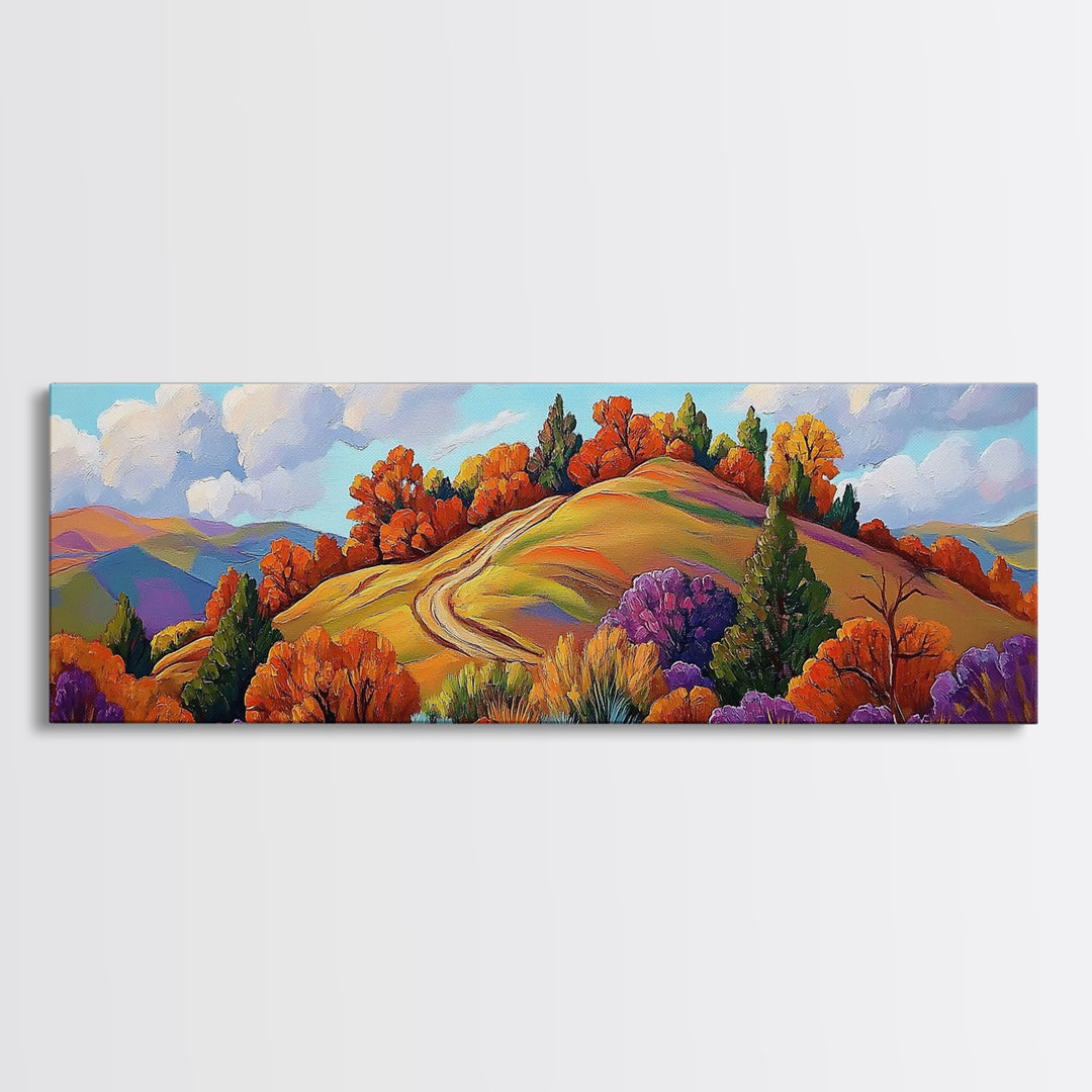 Autumn Hillside Scene, Fall Forest Art, Framed Canvas Print, Colorful Landscape Wall Decor, Cozy Living Room or Cabin Wall Art