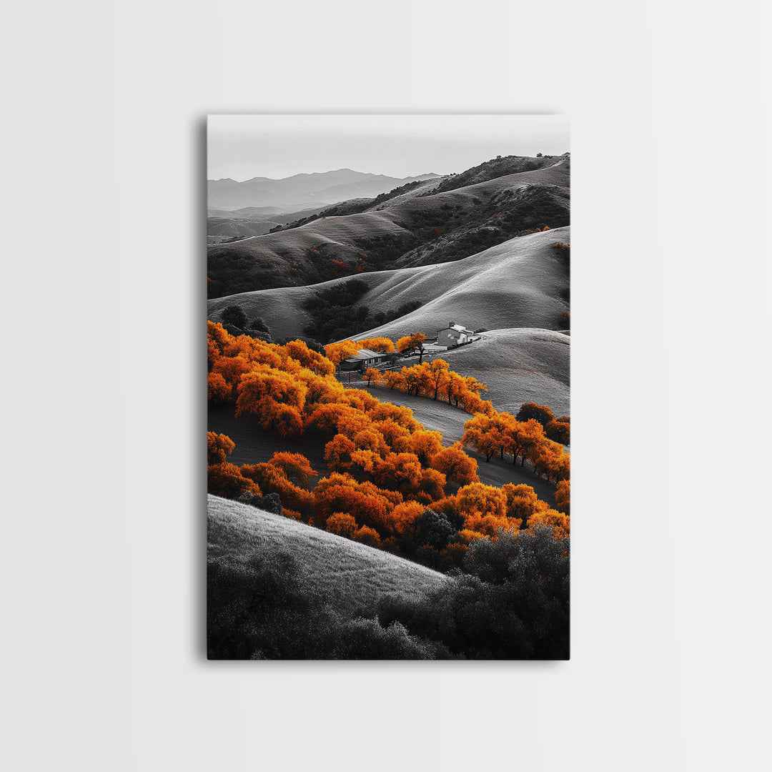 Autumn Hills, Vibrant Trees, Countryside View, Framed Canvas Print, Fall Landscape Art, Farmhouse Decor, Cozy Living Room Accent