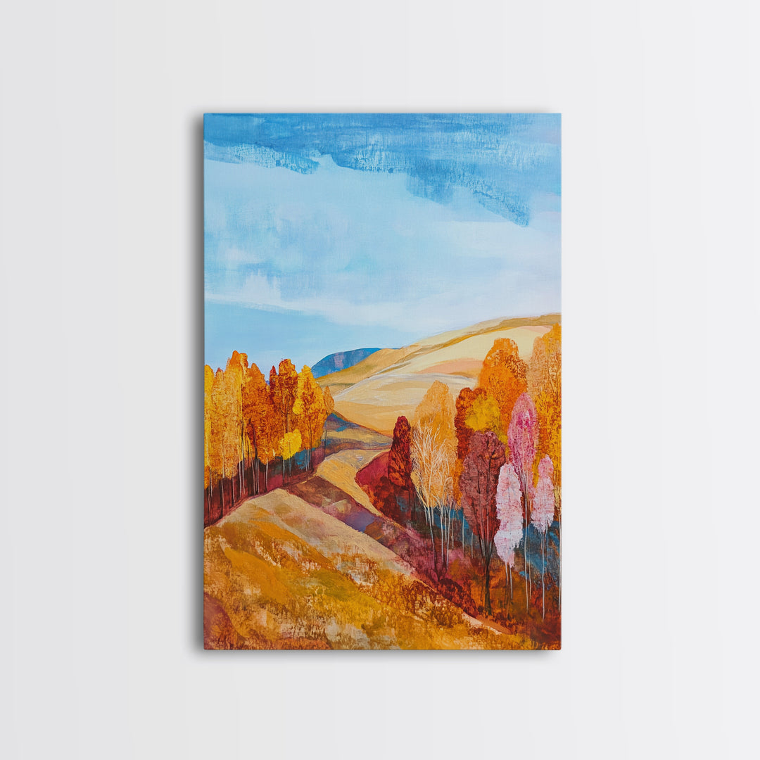Autumn Lake View, Forest Path, Mountain Vibe, Framed Canvas Print, Fall Wall Art, Boho Landscape, Cozy Living Room Decor