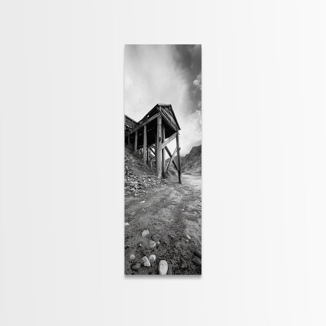 Abandoned Mine, Wooden Structure, Desert Scene, Western Vibes, Black and White Canvas Print, Industrial Rustic Living Room Wall Art