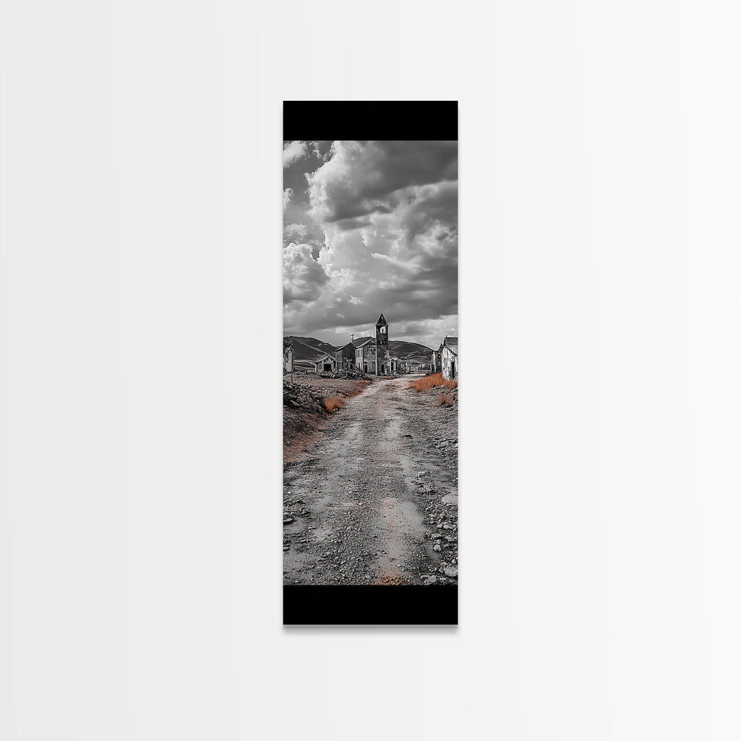 Abandoned Town Art, Rustic Decor, Moody Art, Western Landscape Art, Framed Canvas Print, Extra Wide Art, Farmhouse Art