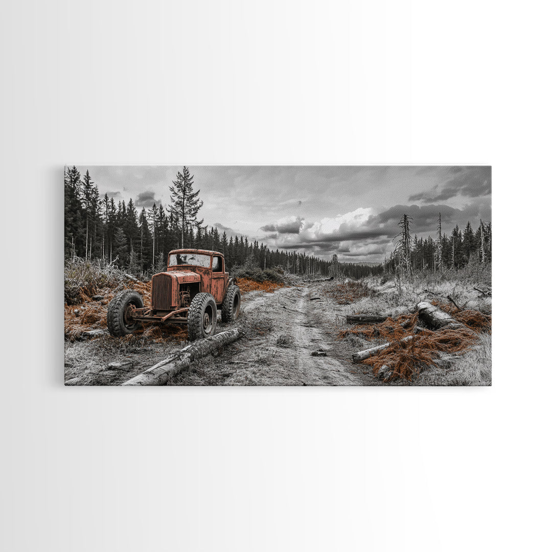 Abandoned Truck, Forest Path, Rustic Vibes, Framed Canvas Print, Autumn Wall Art, Cabin Decor, Farmhouse Style, Vintage Nature Photography