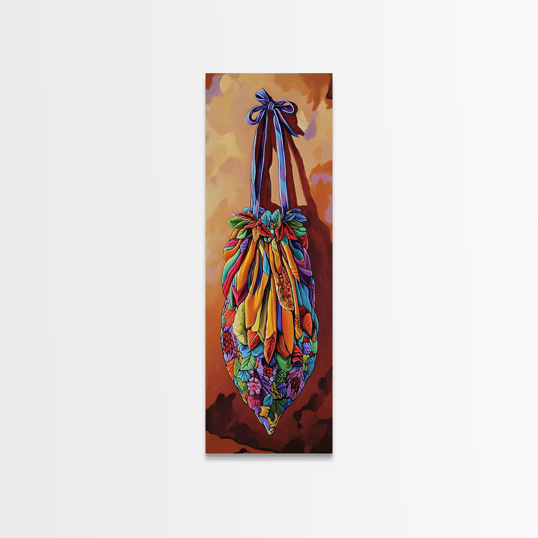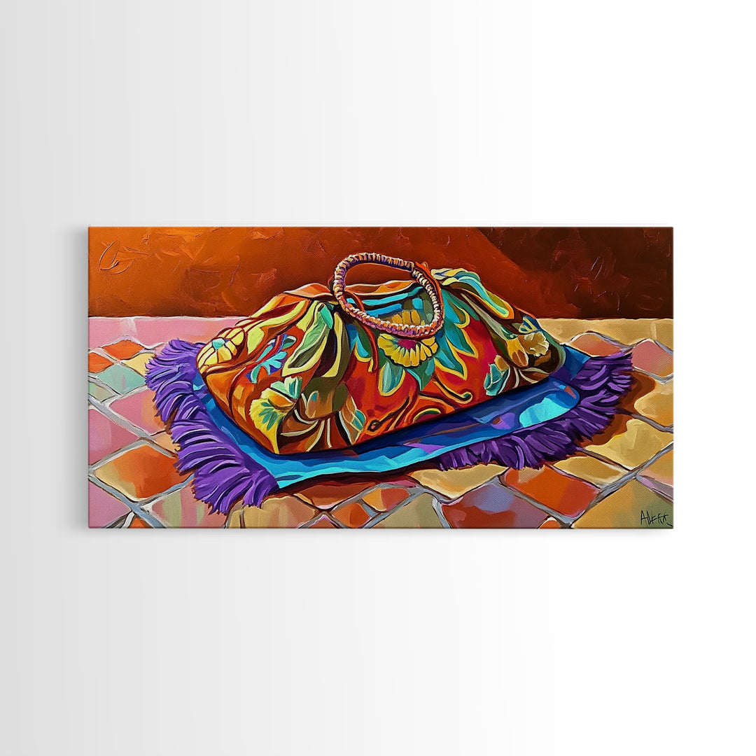 Bag Pattern, Textile, Color, Canvas Print, colorful woven bag painting, vivid tile floor, Mexican textile wall art, boho fashion décor