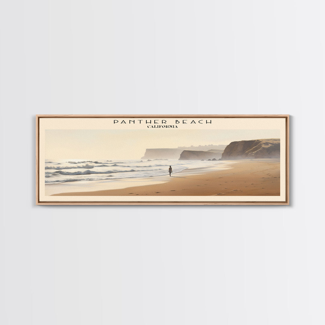 Panther Beach Travel Art Framed Canvas Print, COUNTRY Wall Decor, Home Decor, Travel Poster, Vintage Wall Art, Watercolor Painting