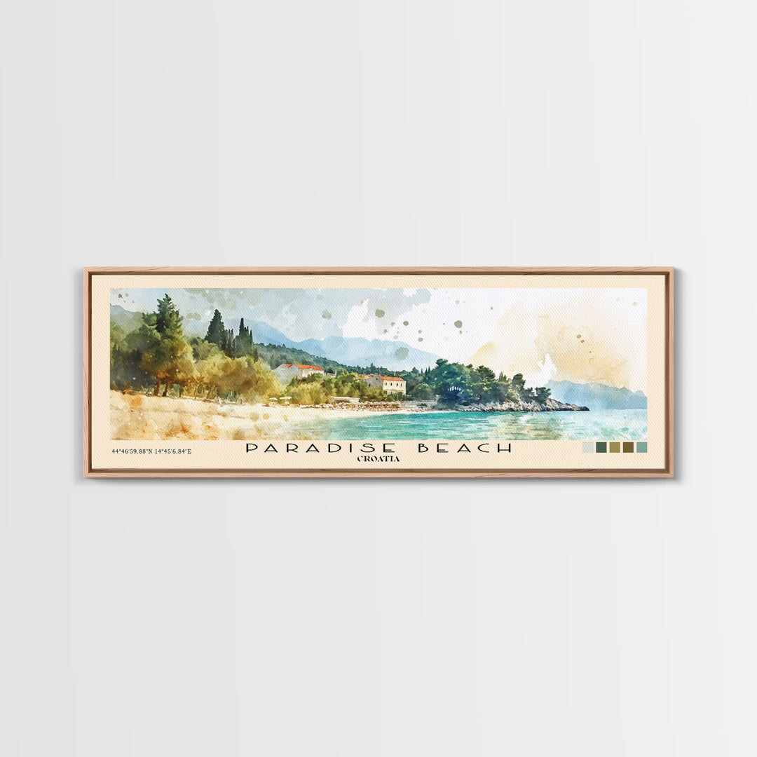 Paradise Beach, Croatia Panoramic Print, Vacation Gift, Croatia Wall Art, Beach Painting, Beach Decor, Large Wall Art, Wood Frame Art