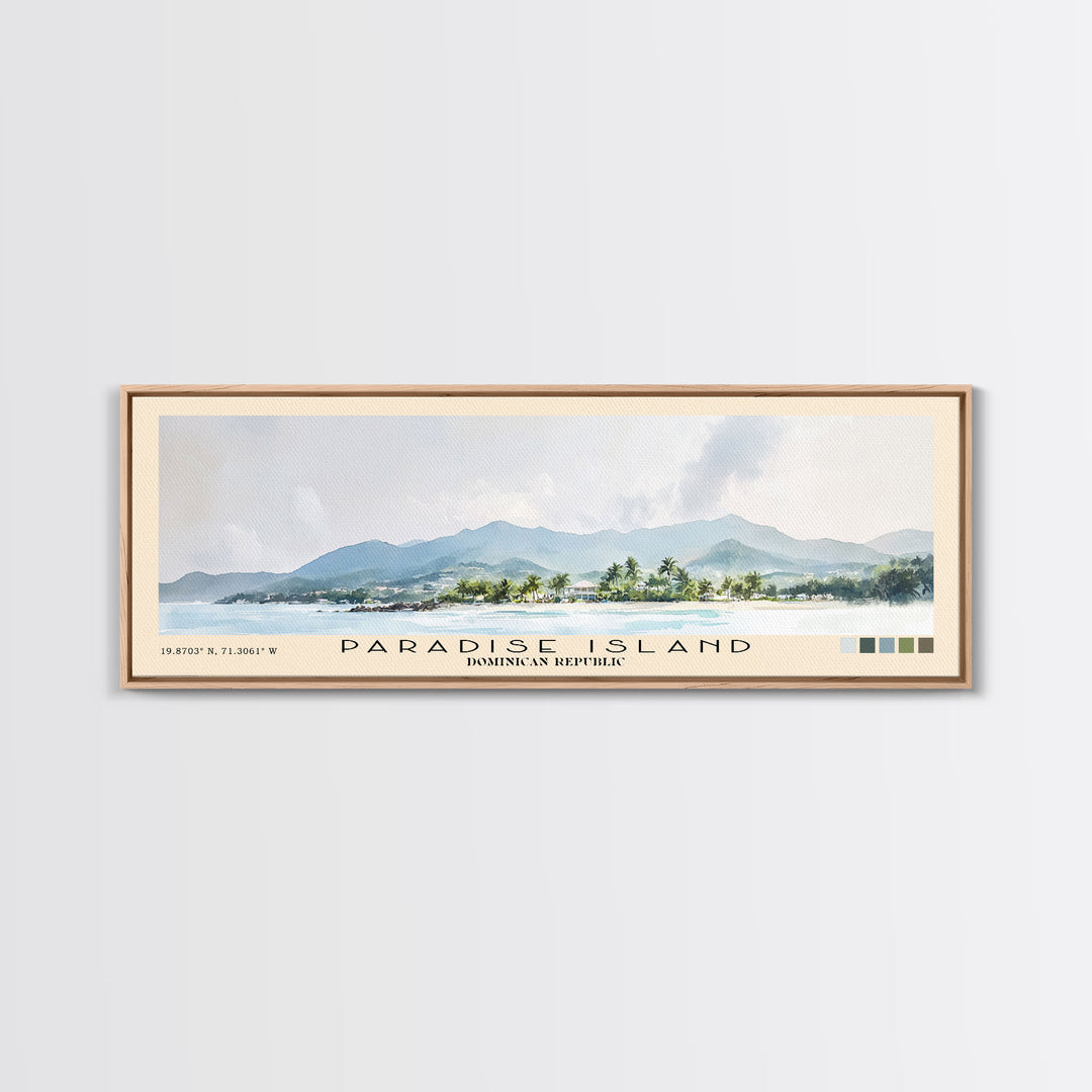 Paradise Island, Dominican Republic Panoramic Beach Print, Vacation Gift, Dominican Republic Wall Art, Framed Canvas Print, Framed Beach Painting