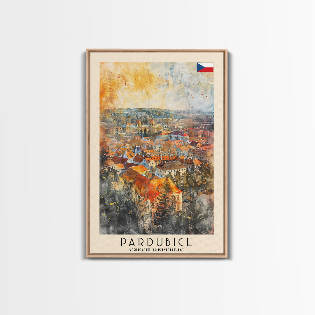 Pardubice Czech Travel Poster Framed Canvas Print, Watercolor Painting, Urban Wall Art, Home Decor, Czech Architecture, Vintage Style