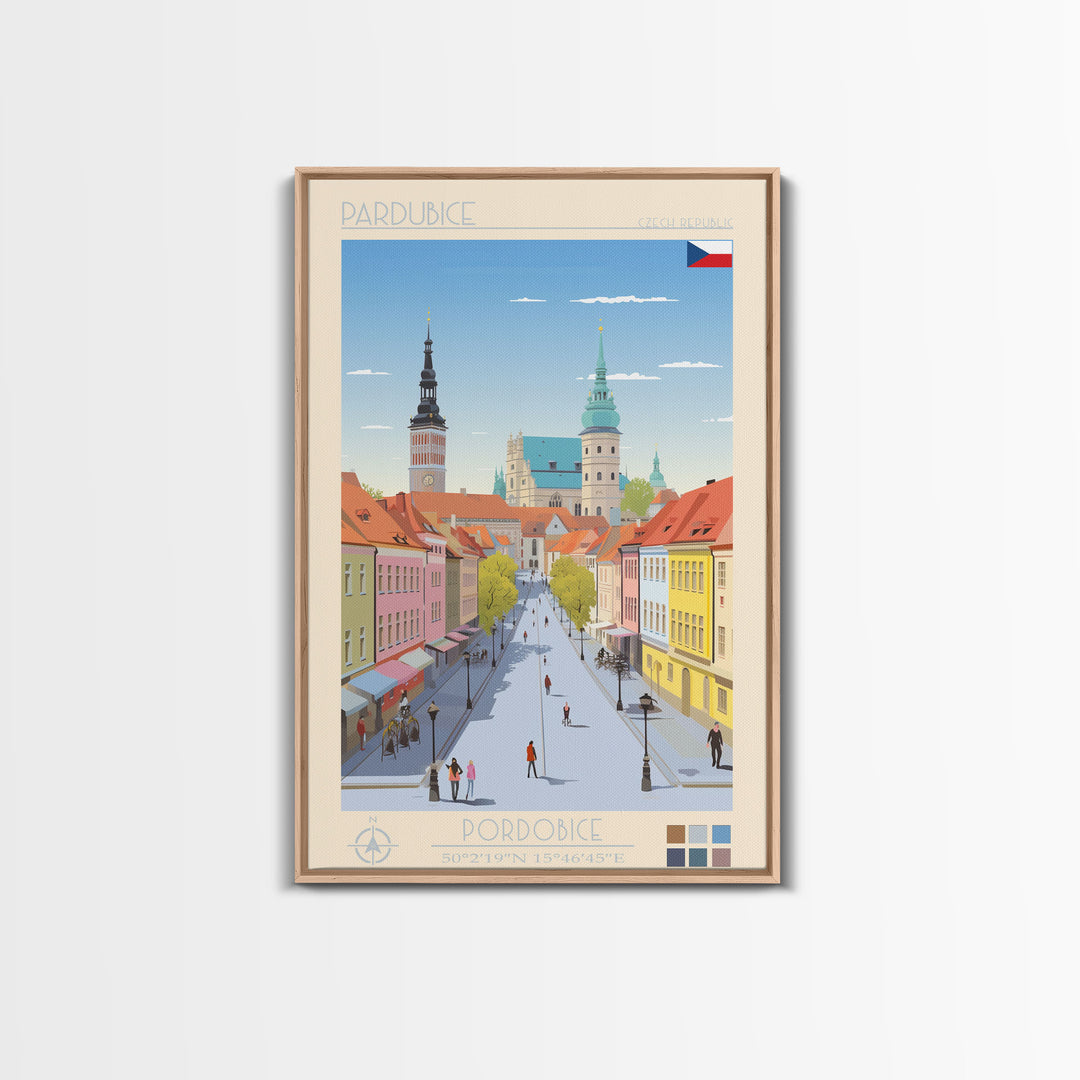 Pardubice Czech Republic Travel Poster Framed Canvas Print, Midcentury Modern Art, Pop Art Wall Decor, Home Decor, Vacation Gift, Bedroom Art