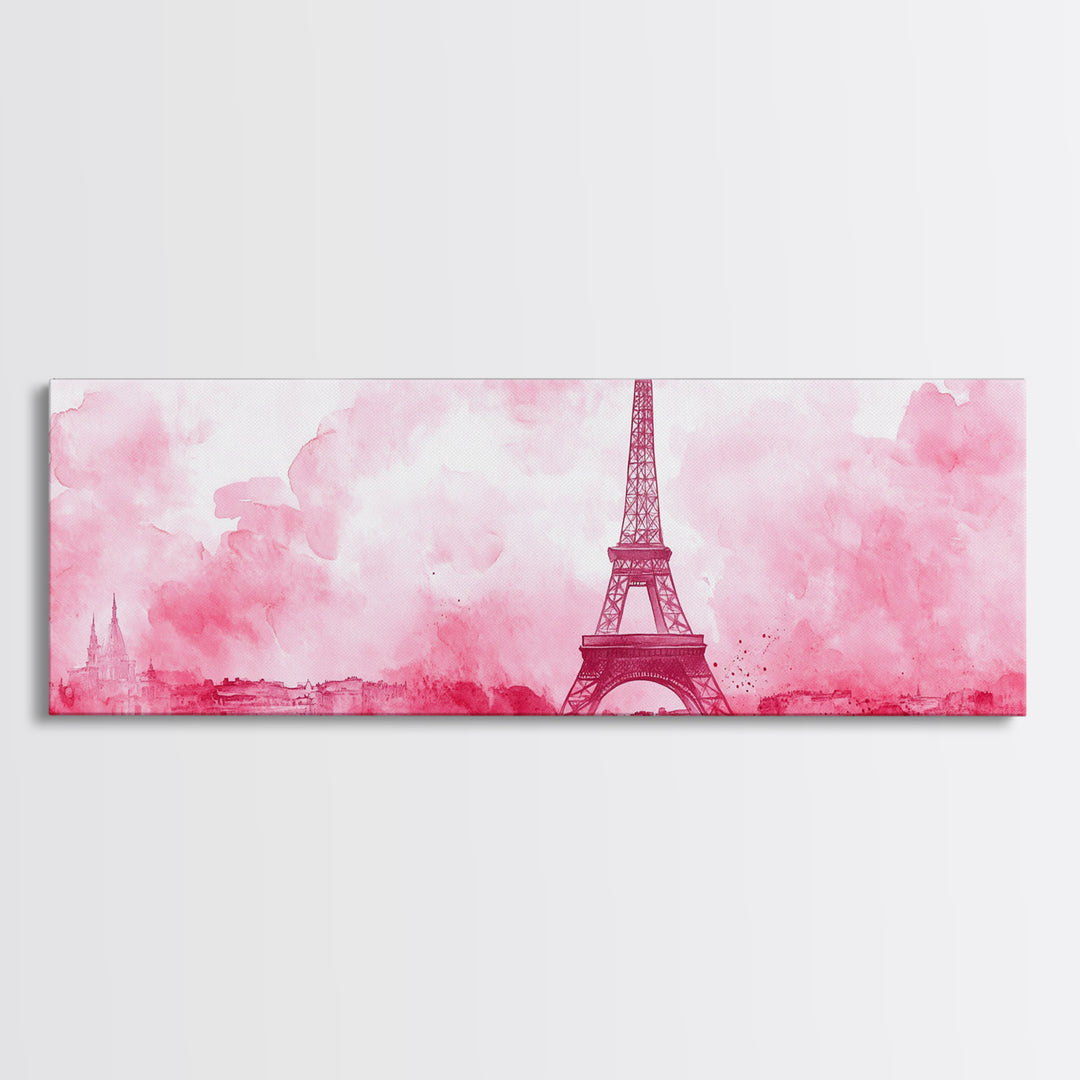 Paris Eiffel Tower Wall Art Canvas Print, Light Pink Cottagecore Romantic Artwork, Bedroom Above Bed Decor Gift Idea Her Artwork