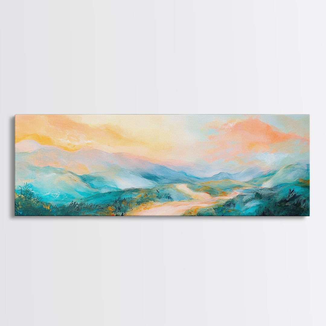 Pastel Sunset Landscape Canvas Print Mountain Wall Art, Serene Home Decor, Nature Painting, Bedroom Artwork, Minimalist Wall Decor