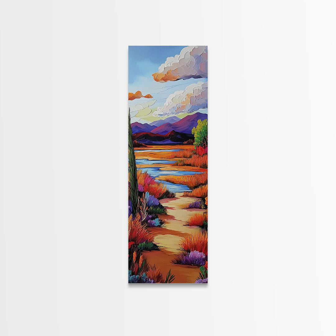 Path Garden, Mountain, Escape - Framed Canvas Print desert garden art, colorful landscape painting, boho decor, hallway wall artwork