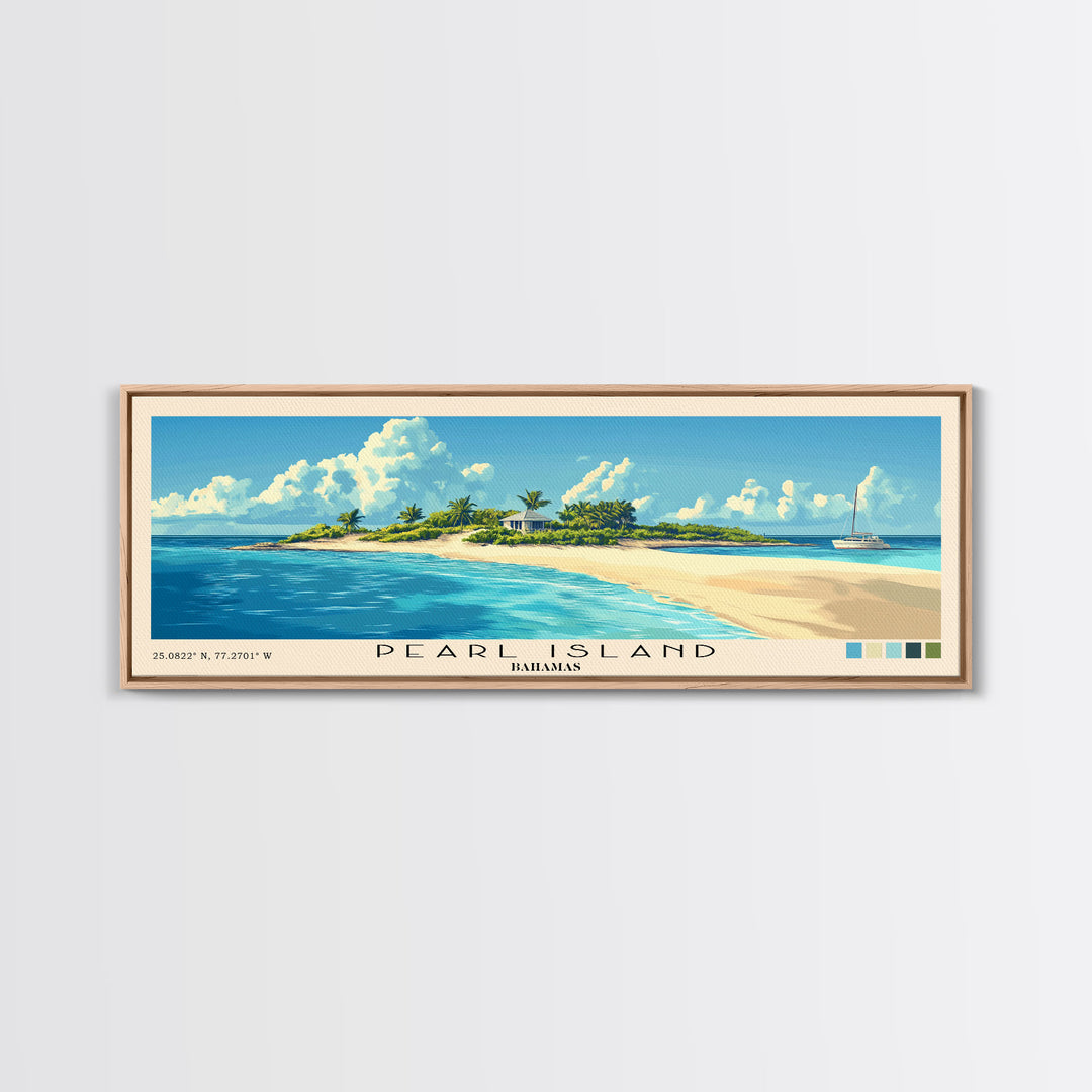 Pearl Island, Bahamas Panoramic Print, Vacation Gift, Bahamas Wall Art, Beach Painting, Beach Decor, Large Wall Art, Wood Frame Art
