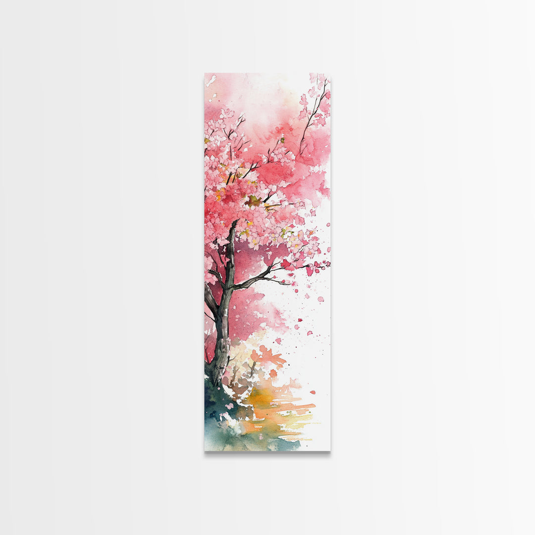 Peach Blossoms On Branch With Soft Pastel Background Tall Art Skinny Art Framed Canvas Print Japanese Style Art Ukiyo-e Wood Block Print