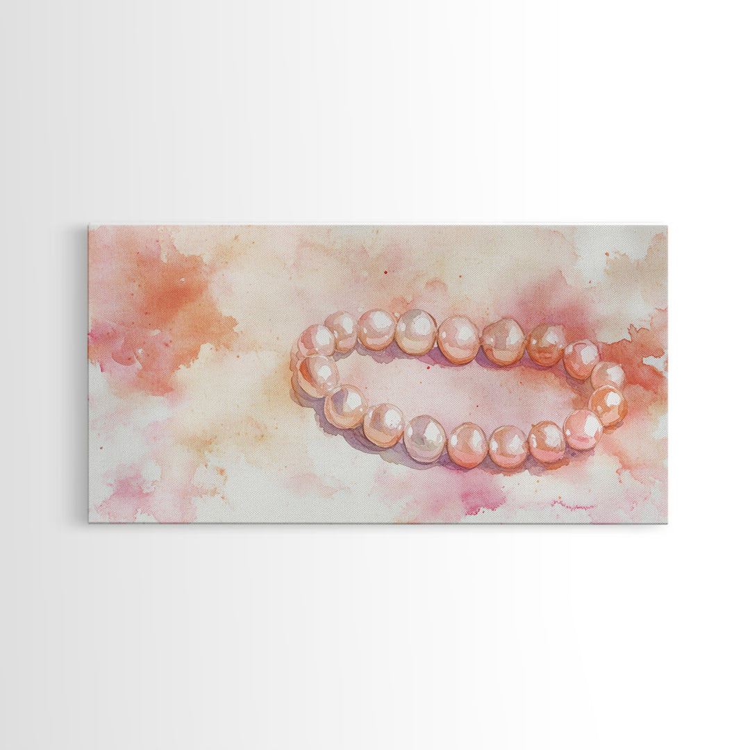 Pearl Bracelet Canvas Print Light Pink Wall Art Feminine Jewelry Artwork Romantic Rustic Decor Cottagecore Aesthetic Bedroom Ar