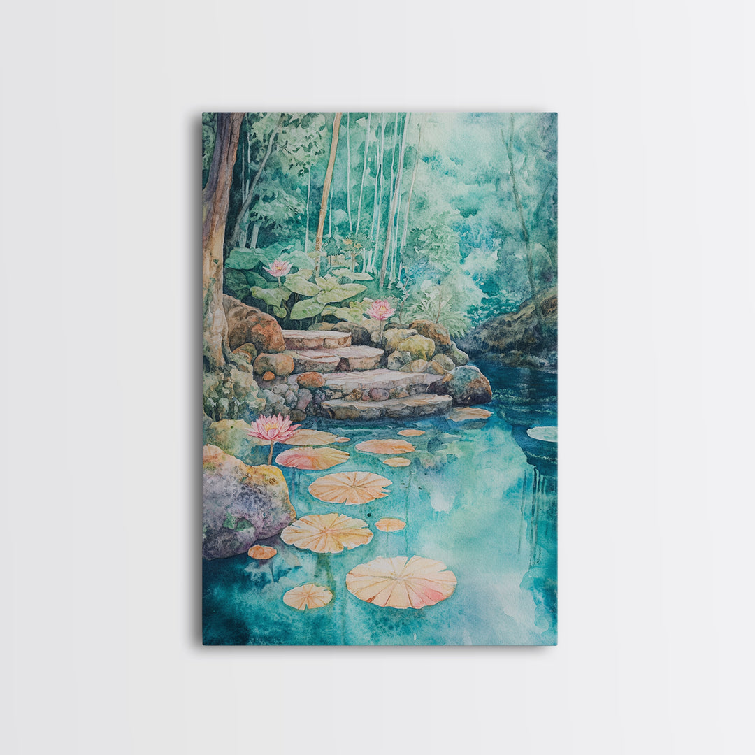 Peaceful Water Lily Pond Canvas Print Botanical Zen Wall Art Calm Living Room Decor Gift Idea Minimalist Cottagecore Artwork