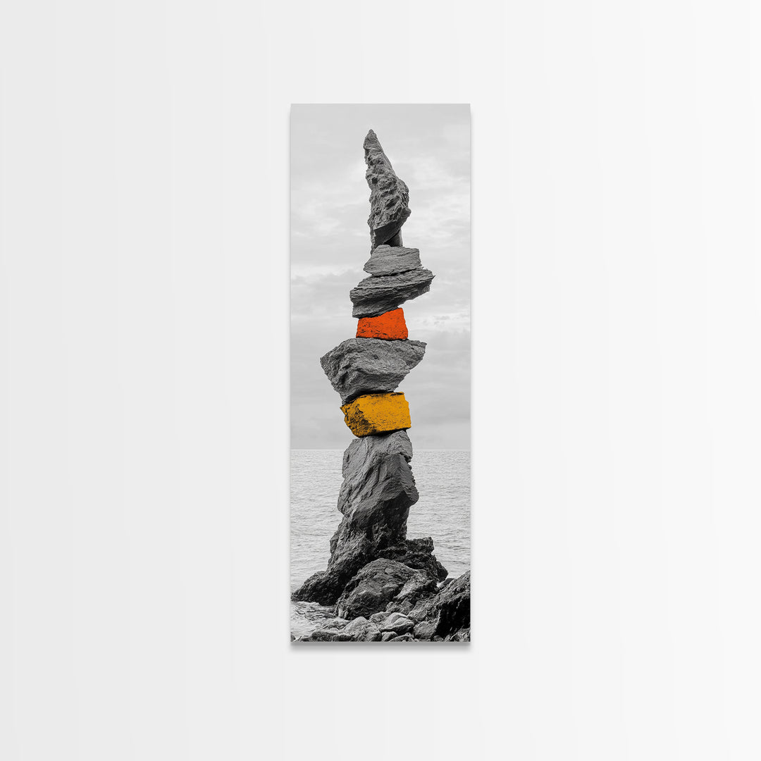 Balanced Rocks, Ocean Stack, Zen Formation, Color Pop Stones, Framed Canvas Print, Mindfulness Decor, Meditation Room Art, Nature Style