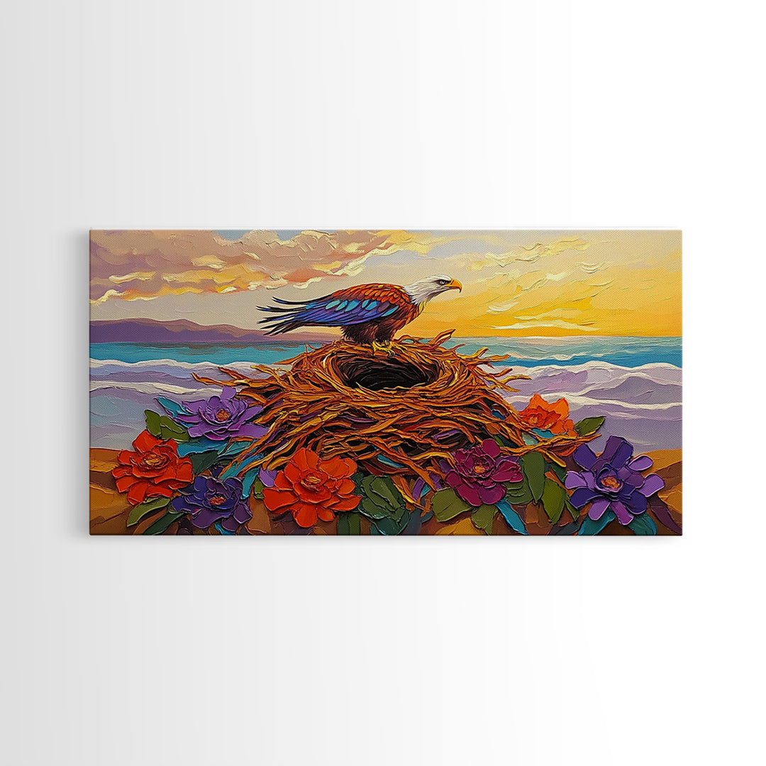 Bald Eagle Nest, bird art, wildlife painting, nature decor, rustic art, farmhouse art, gift idea for him, canvas print