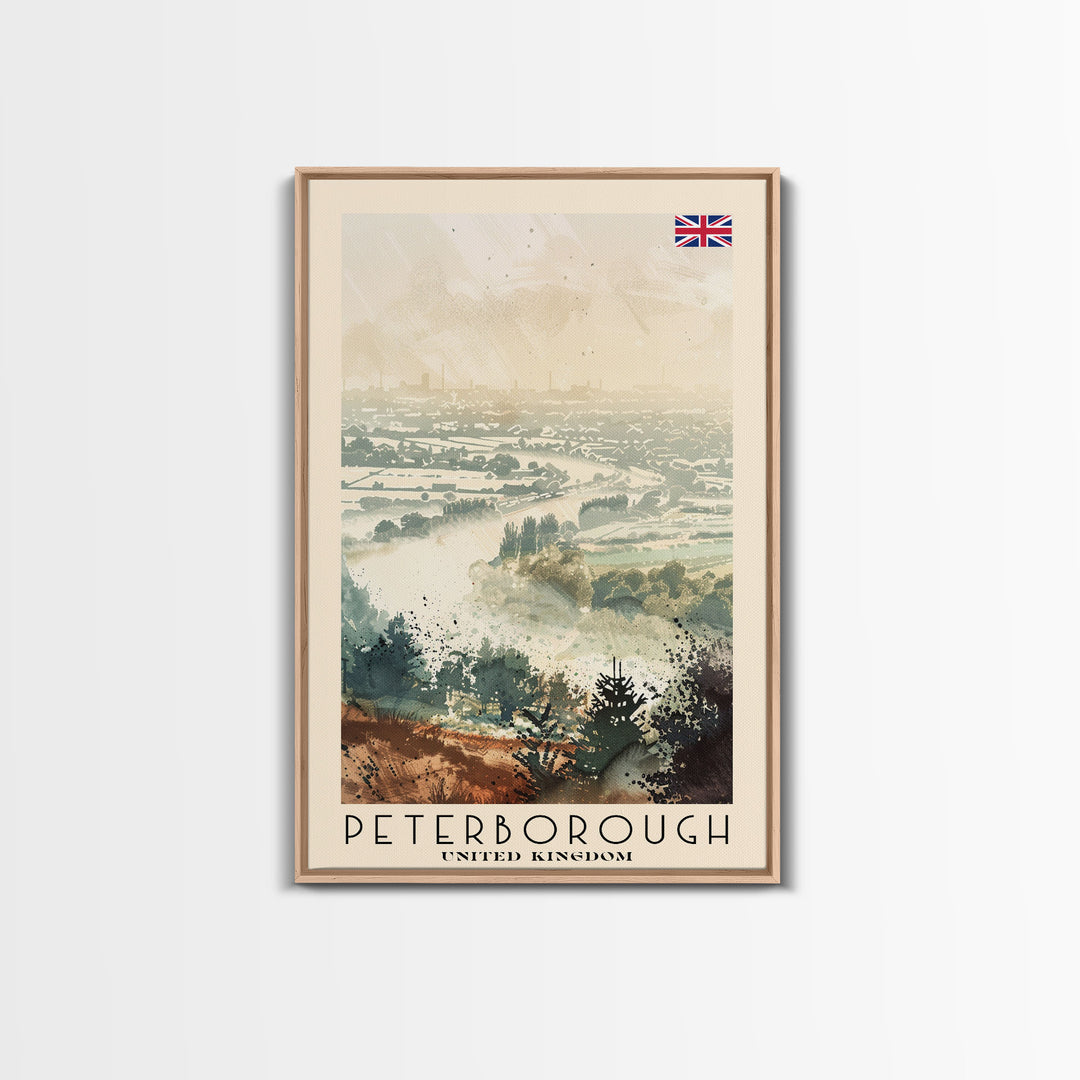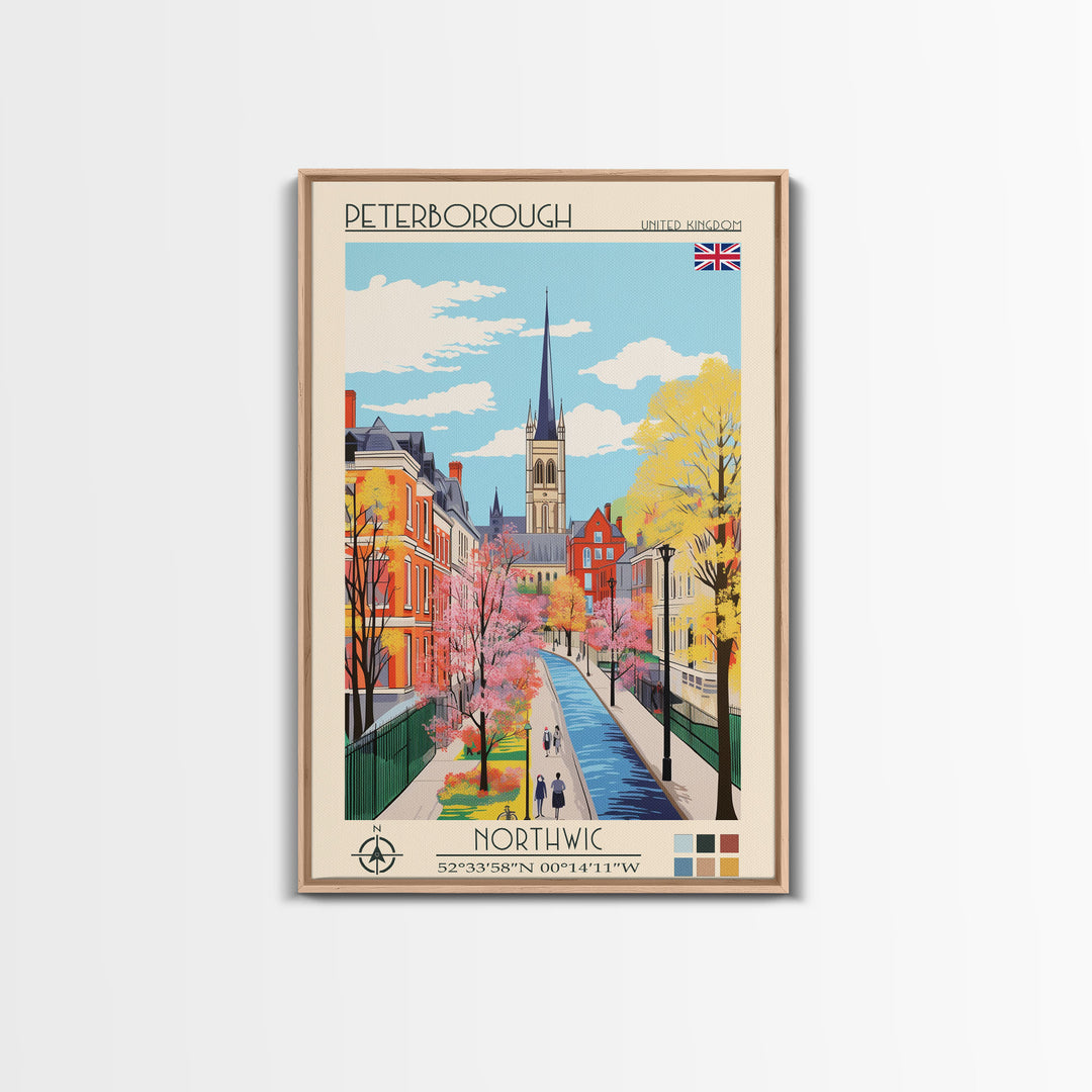 Peterborough United Kingdom Travel Poster Framed Canvas Print, Midcentury Modern Art, Pop Art Wall Decor, Home Decor, Vacation Gift, Office Art