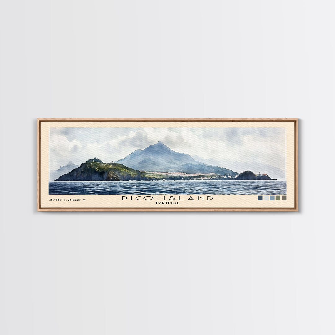 Pico Island, Portugal Panoramic Beach Print, Vacation Gift, Portugal Wall Art, Framed Canvas Print, Framed Beach Painting