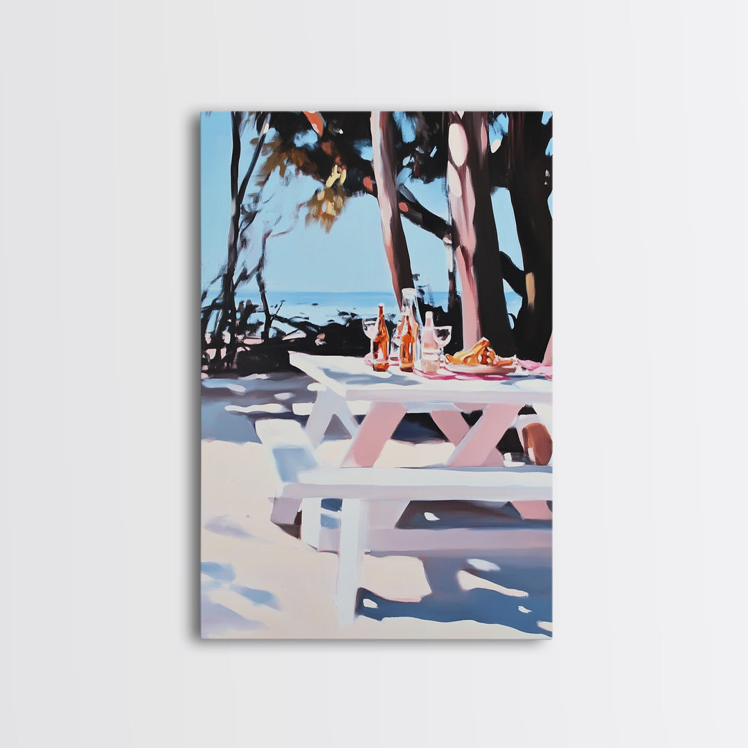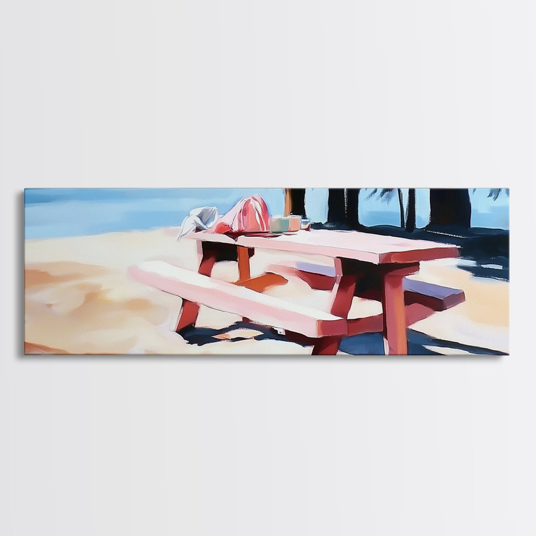 Picnic Table, Beach, Coastal, Canvas Print, Summer Wall Art, Relaxing Nature Artwork, Minimalist Decor, Living Room or Patio Art
