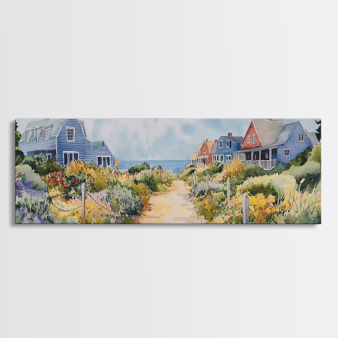 Panoramic Painting Print of Nantucket, Framed Canvas, Nautical Wall Art, Seascape landscape painting, Horizontal Nantucket Wall Art