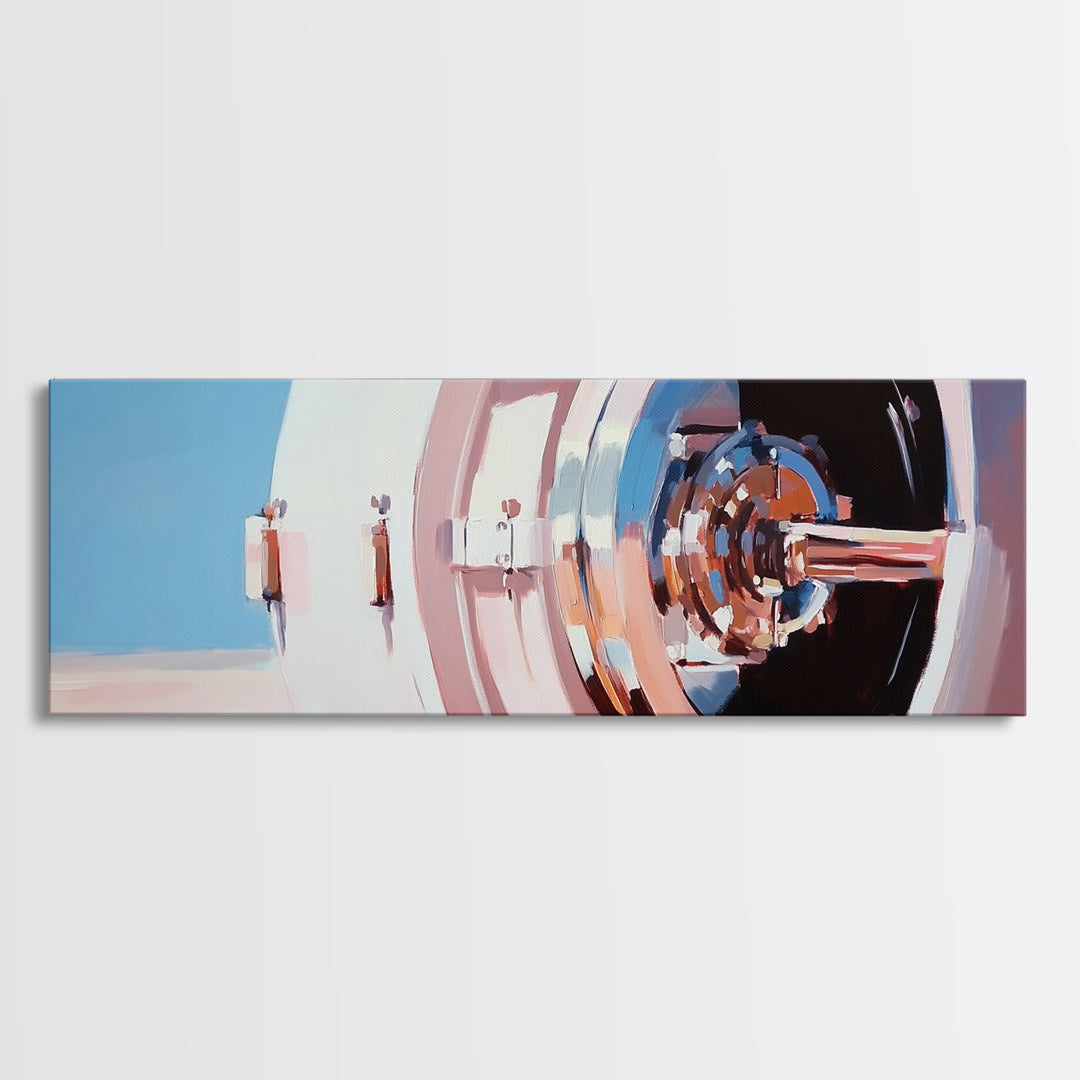 Bank Vault, Industrial Decor, Metallic Wall Art, Framed Canvas Print, Steampunk Aesthetic, Modern Office Artwork, Unique Home Decor