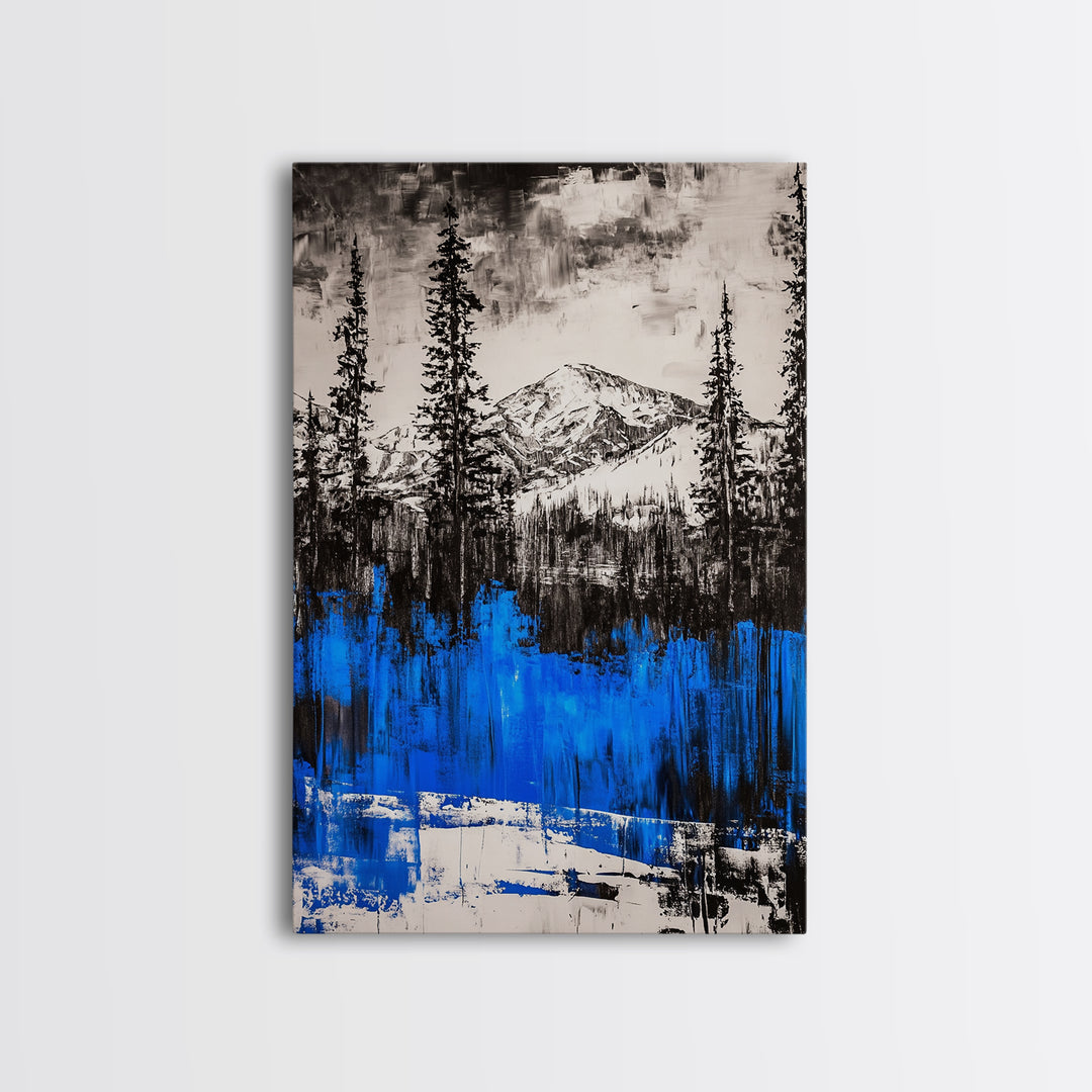 Mountain Wilderness, Winter Landscape, Blue Trees, Framed Canvas Print, Cabin Wall Art, Outdoor Lover Gift, Serene Nature Art