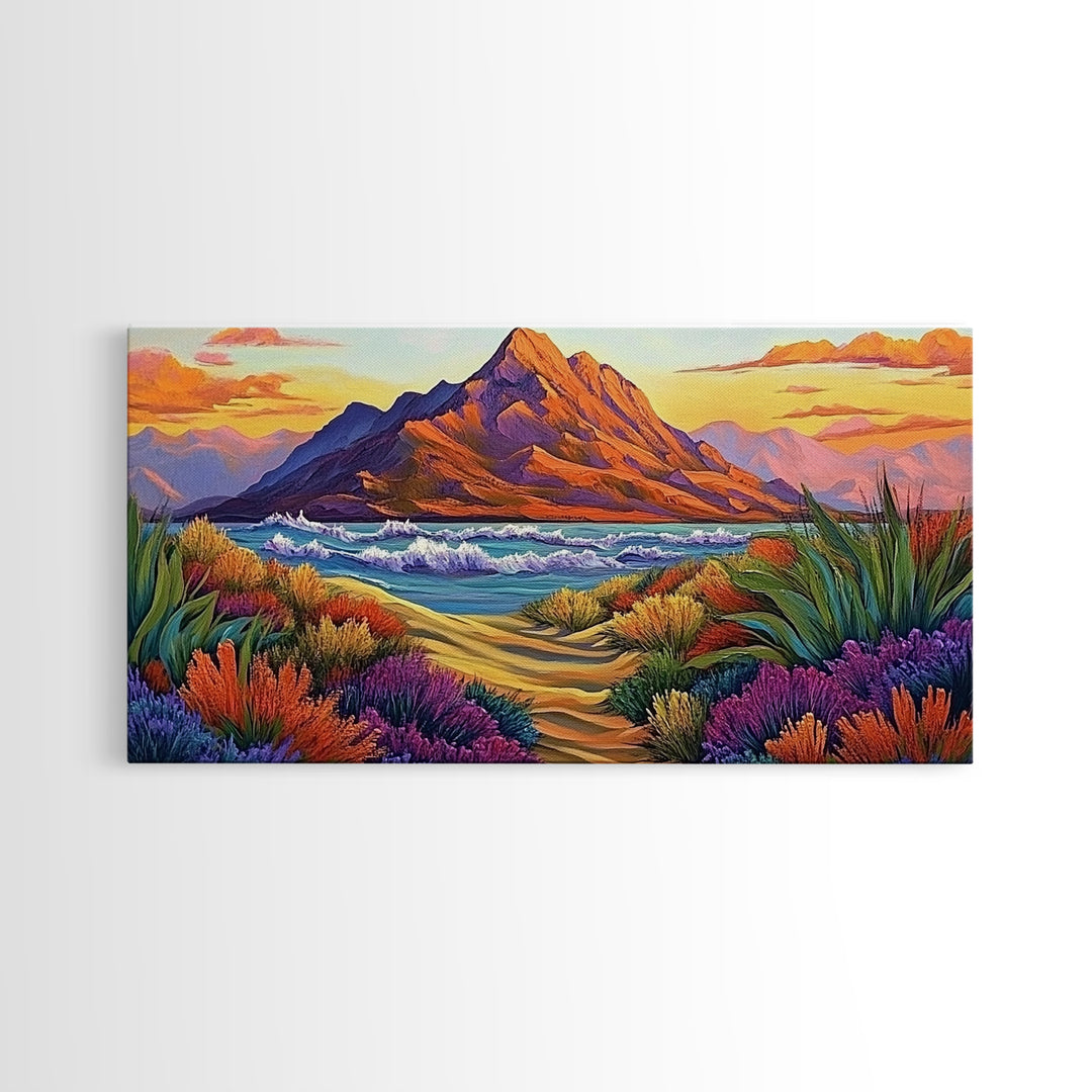 Mountains Waves, Path, Sunset Landscape Canvas Print, Colorful Nature Wall Art, Southwest Bedroom Decor, Autumn Art Style