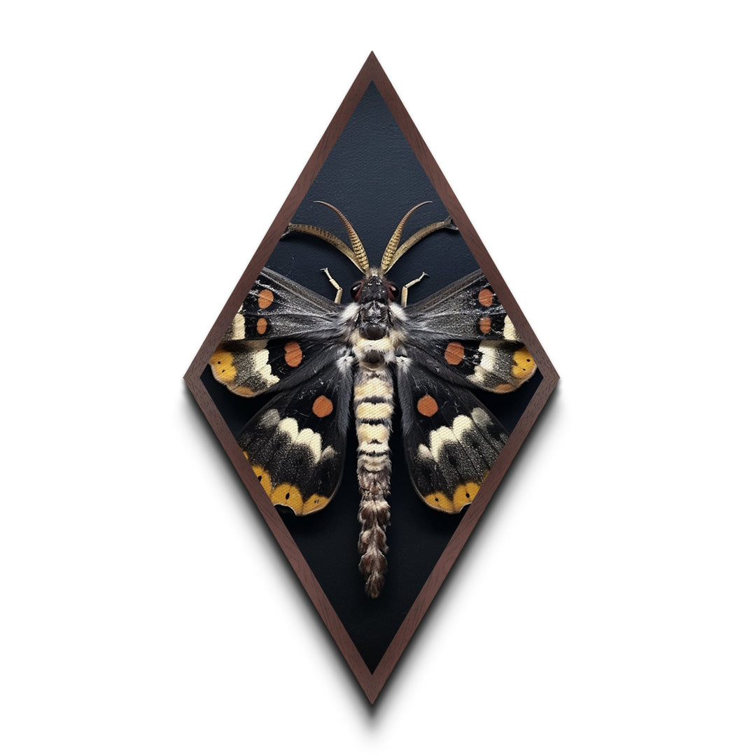 Mounted moth with striped body and orange spots Canvas Art Print in Diamond Shaped Art style for gothic naturalist Halloween decor