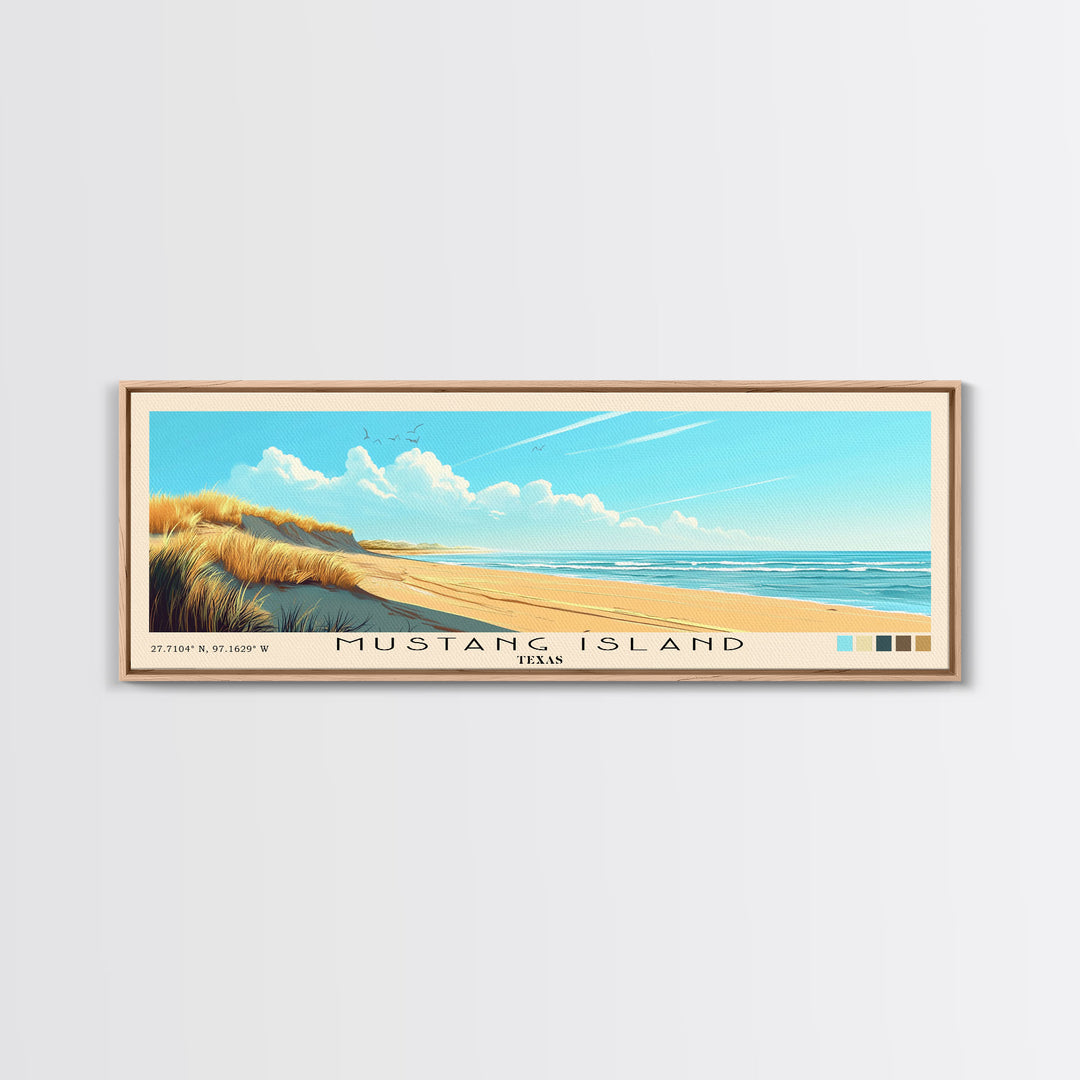 Mustang Island State Park, Texas Panoramic Print, Vacation Gift, Texas Wall Art, Beach Painting, Beach Decor, Large Wall Art, Wood Frame Art